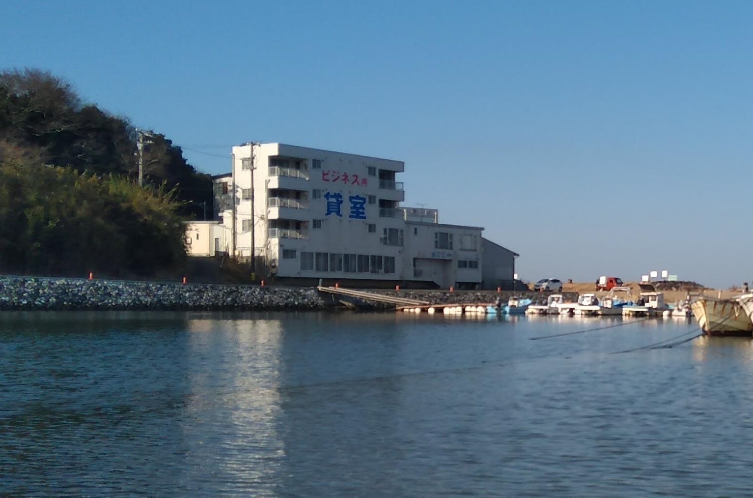 施設の外観 目の前に船着き場や潮干狩り場、すぐ近くに砂浜の海水浴場があります
