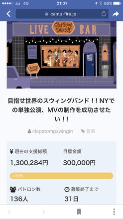 NYツアー支援プロジェクト、プロジェクト開始から16日目で130万円を超える事が出来ました!!皆様本当にありがとうございます!!