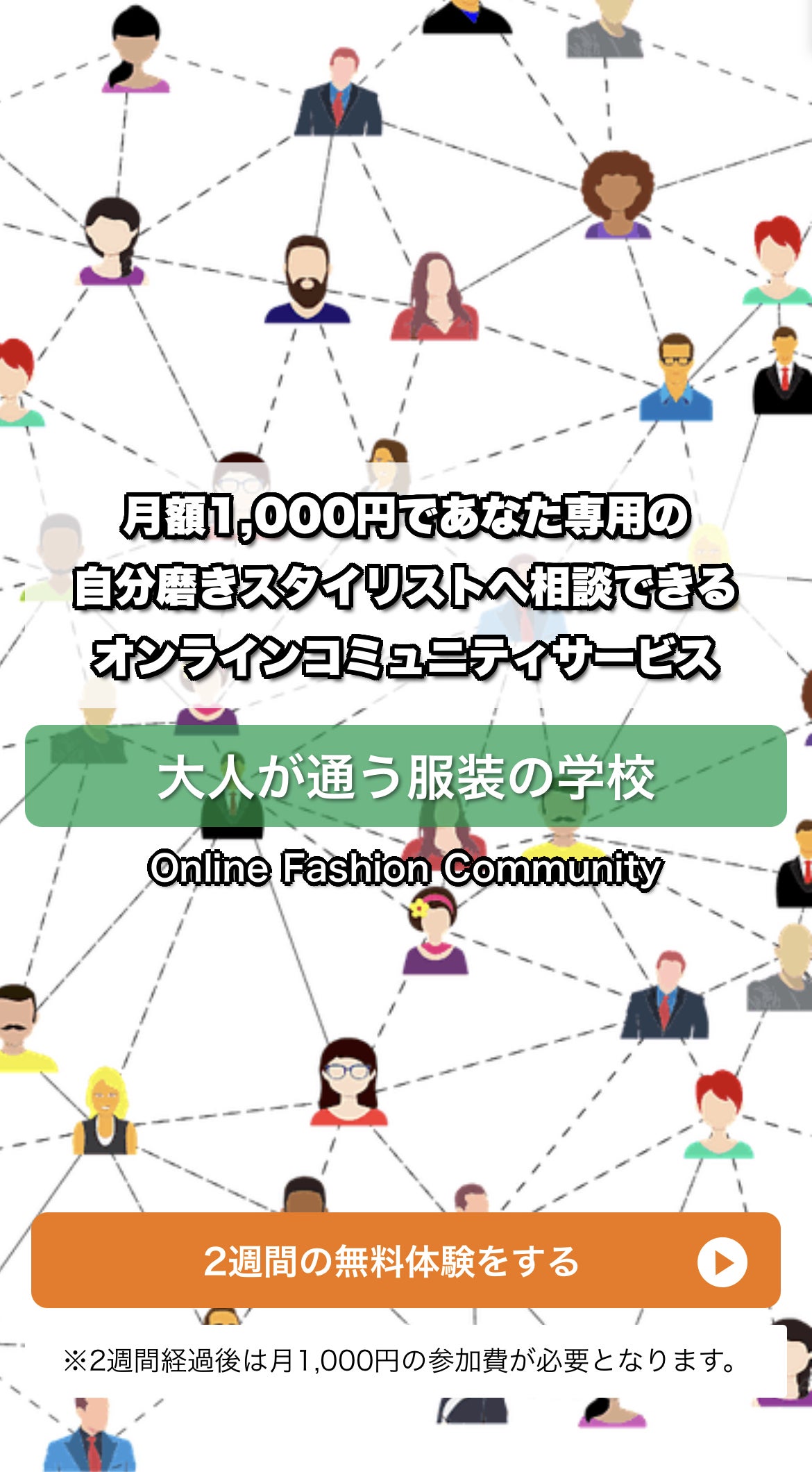 自分の「印象」に自信がありますか?もし少しでも変わりたいな、という興味があるのなら、ぜひ「大人が通う服装の学校」に参加してみてください!毎日の専門家の発信で知識を増やし、悩んだときには気軽に相談し、同じ興味を持った仲間とつながれたら、楽しみながら、変わっていくことができます。