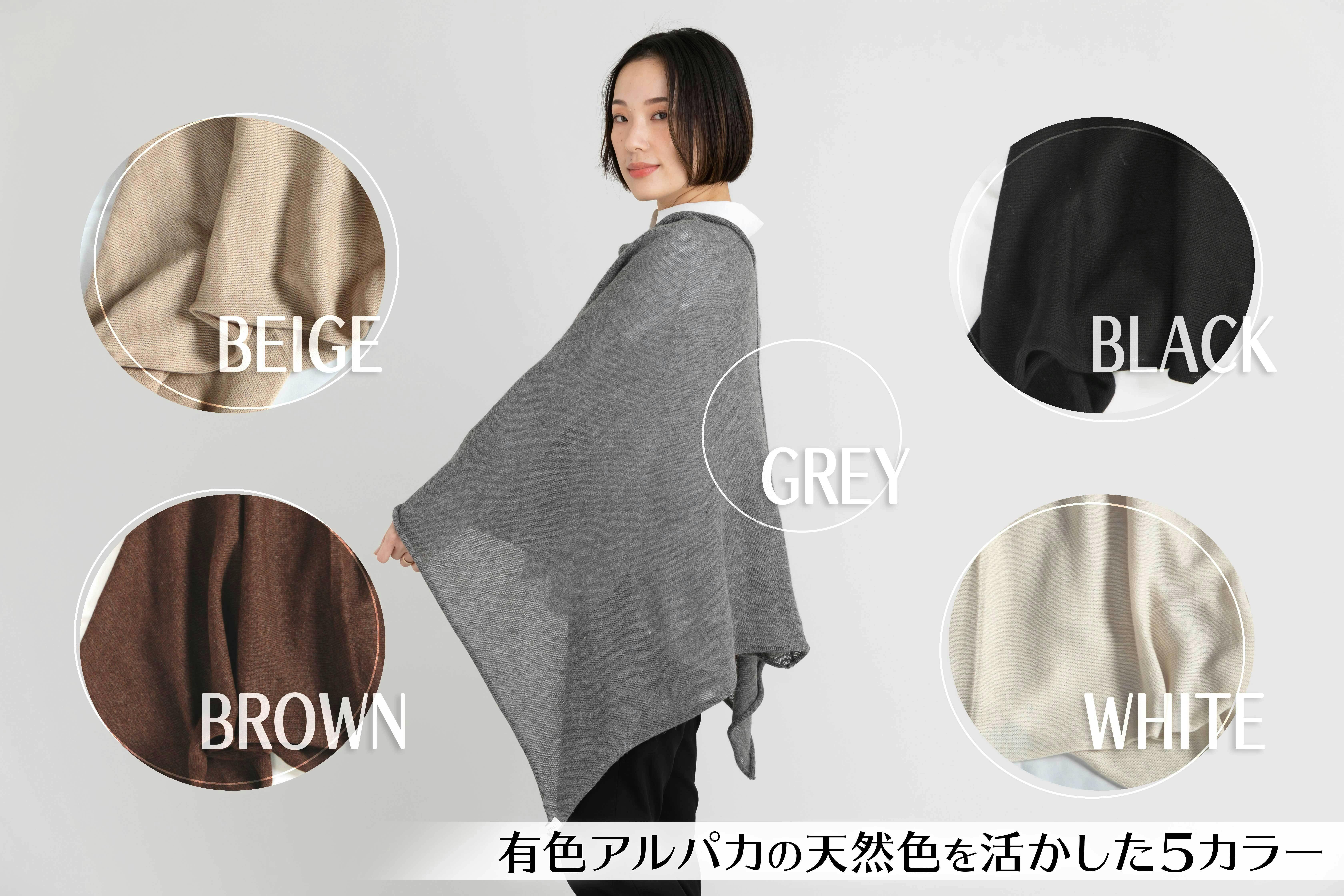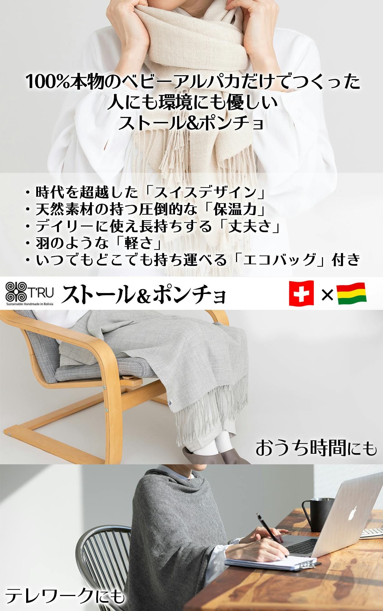 ボリビア産の上質なベビーアルパカ繊維の持つ優れた特徴を活かしたT’RUのストールとポンチョ。
