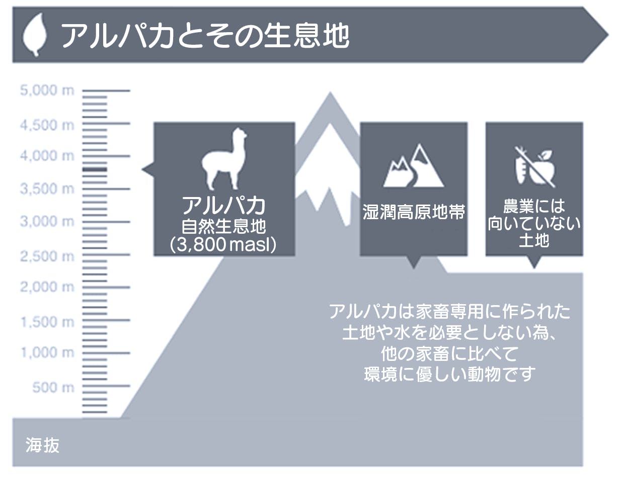 またアルパカ繊維の洗浄プロセスで使用される処理に必要な化学物質やエネルギーもウールやカシミアに比べ少なくて済みます。