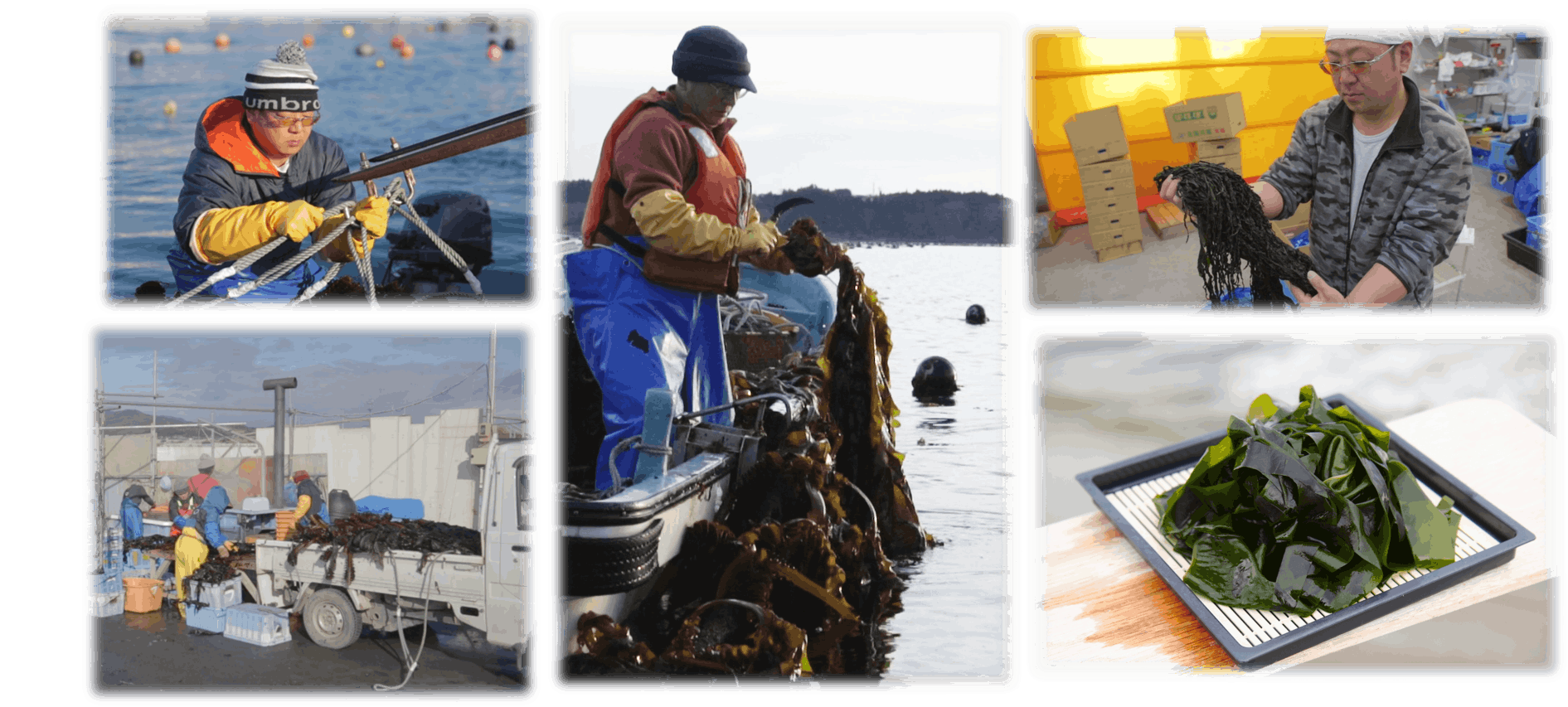 ワカメ養殖は三陸を代表する漁業の一つで、生産量は日本一を誇ってきました。しかしながら、先の震災では我々の地域の養殖いかだは100%が沖に流され、500艇あった船も、残ったのはたったの20艇、海は瓦礫や土砂で埋め尽くされ、壊滅的な打撃を受けました。その状況を初めて見たとき「5年以上はワカメ養殖は出来ないだろう」と、多くの漁師が絶望しました。