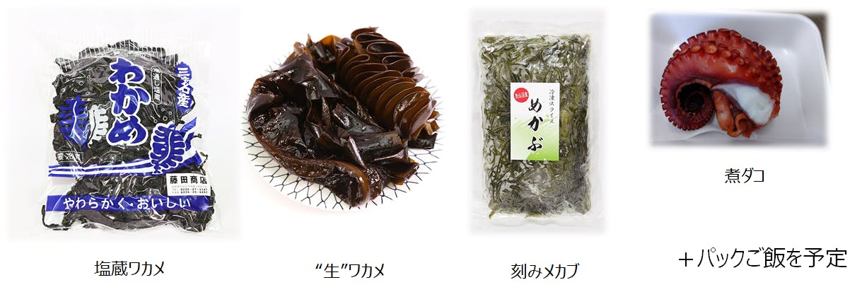を準備し、子ども達に笑顔になってもらいながら、私たちの想いを伝えたいと思います。支援食材はワカメを中心に下記のものを予定しております。