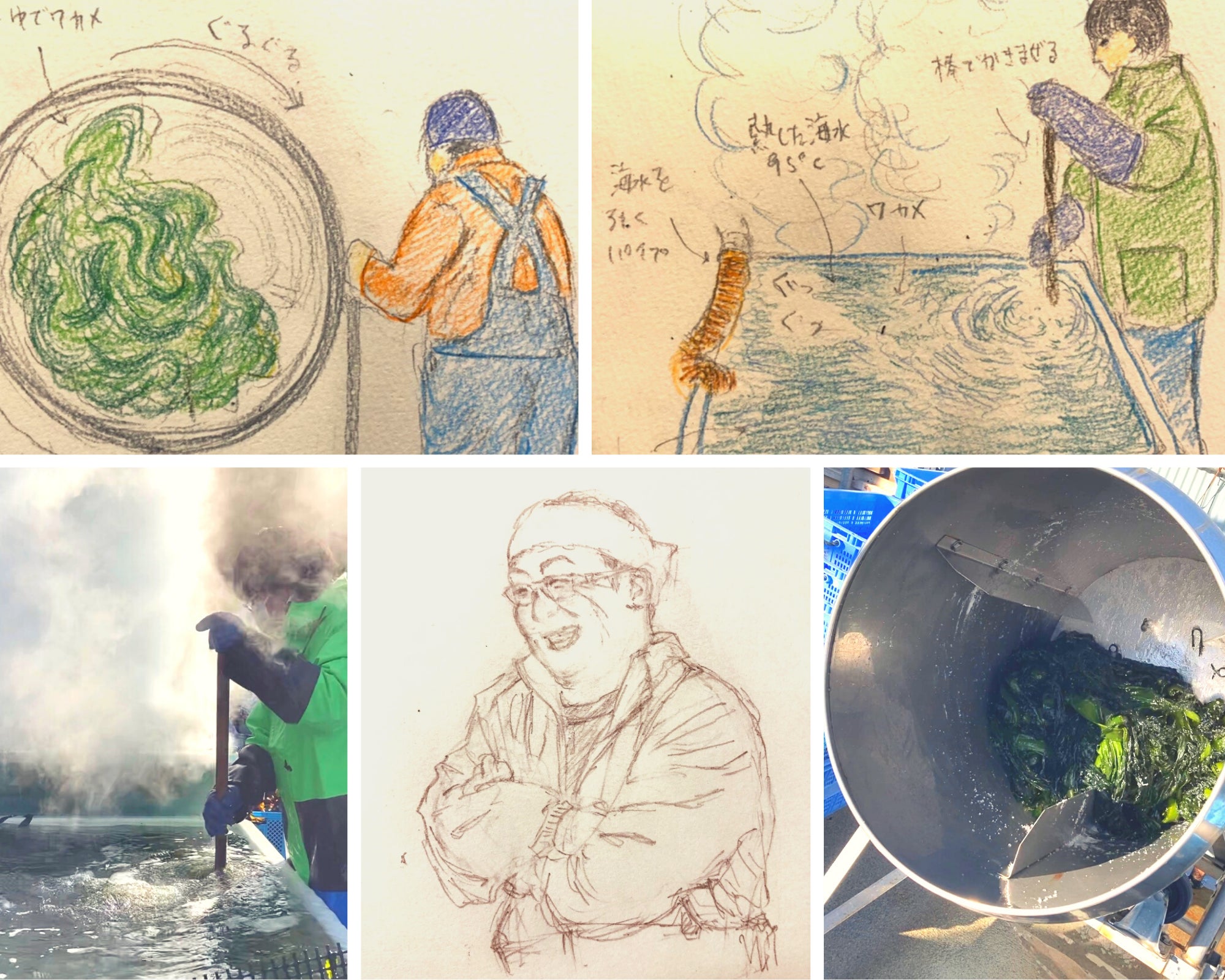 描いてくれた方も最初は採れたてワカメの姿をご存知ありませんでしたが、インタビューや質問を重ねてワカメに関する理解を深められて、こんなに素敵なイラストに。