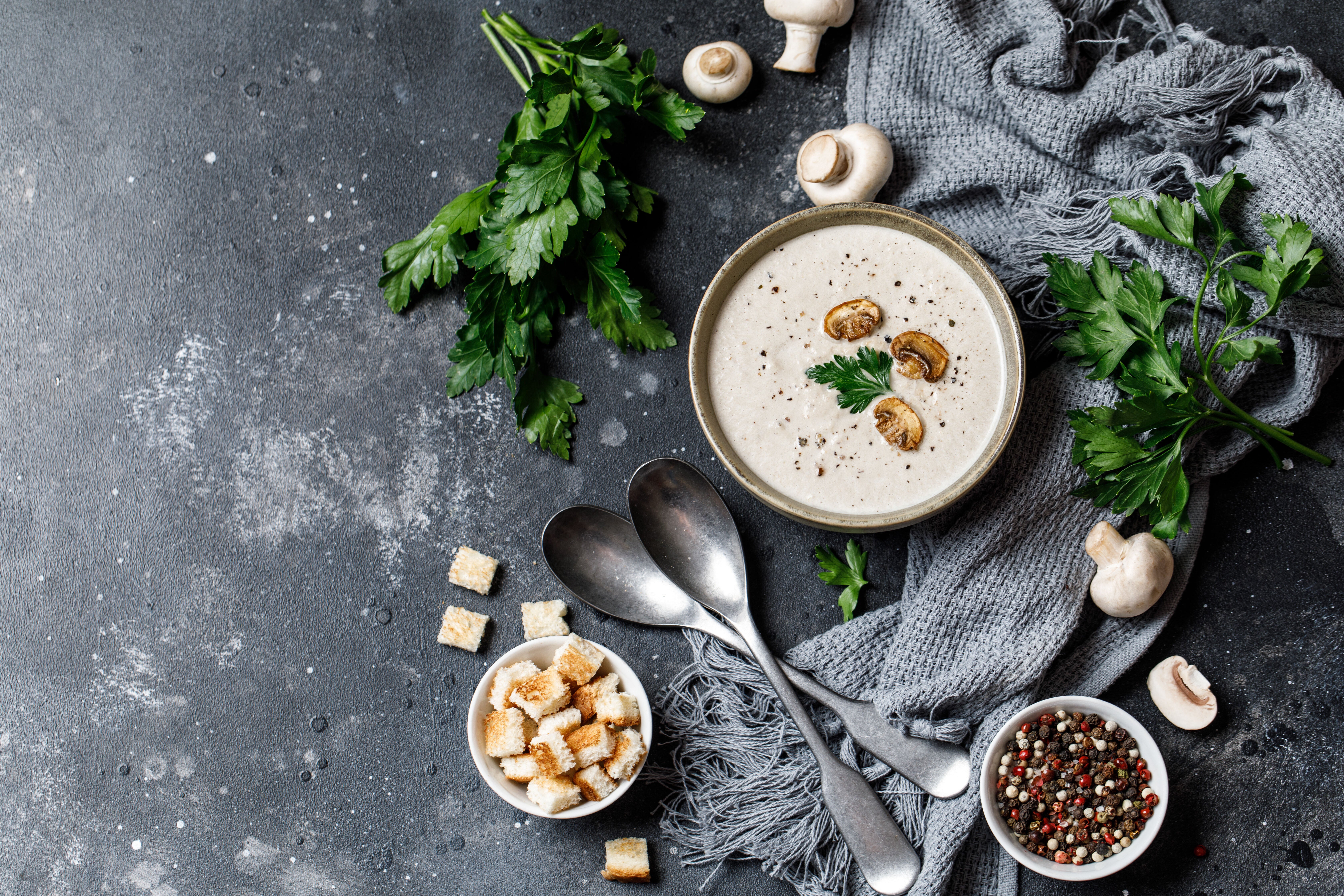 〔濃厚なマッシュルームポタージュをお愉しみください〕