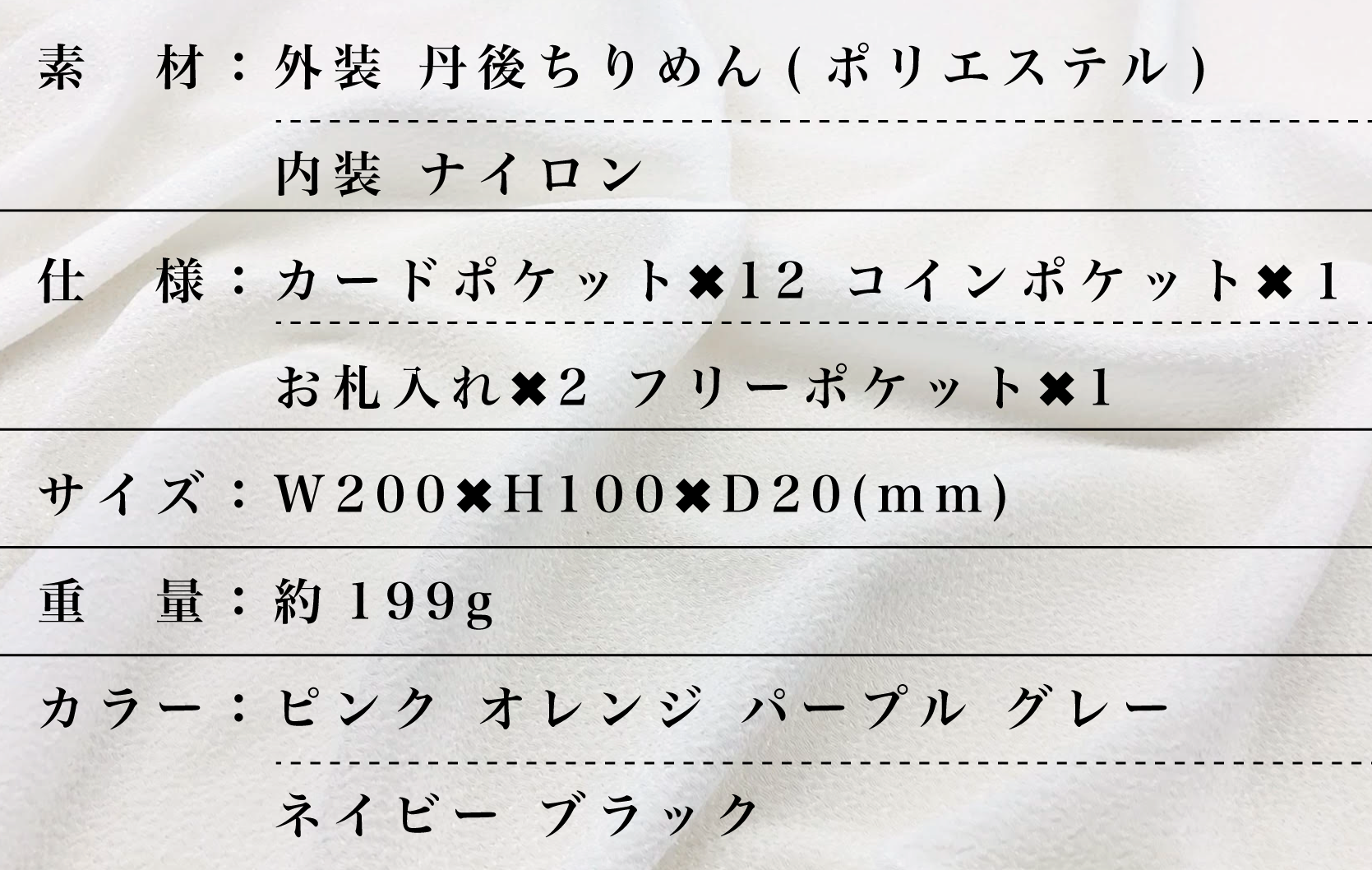 丹後ちりめんの素材感を楽しむだけでなく実用性としても高く使いやすいを意識し、カードは最大12枚収納が可能です。