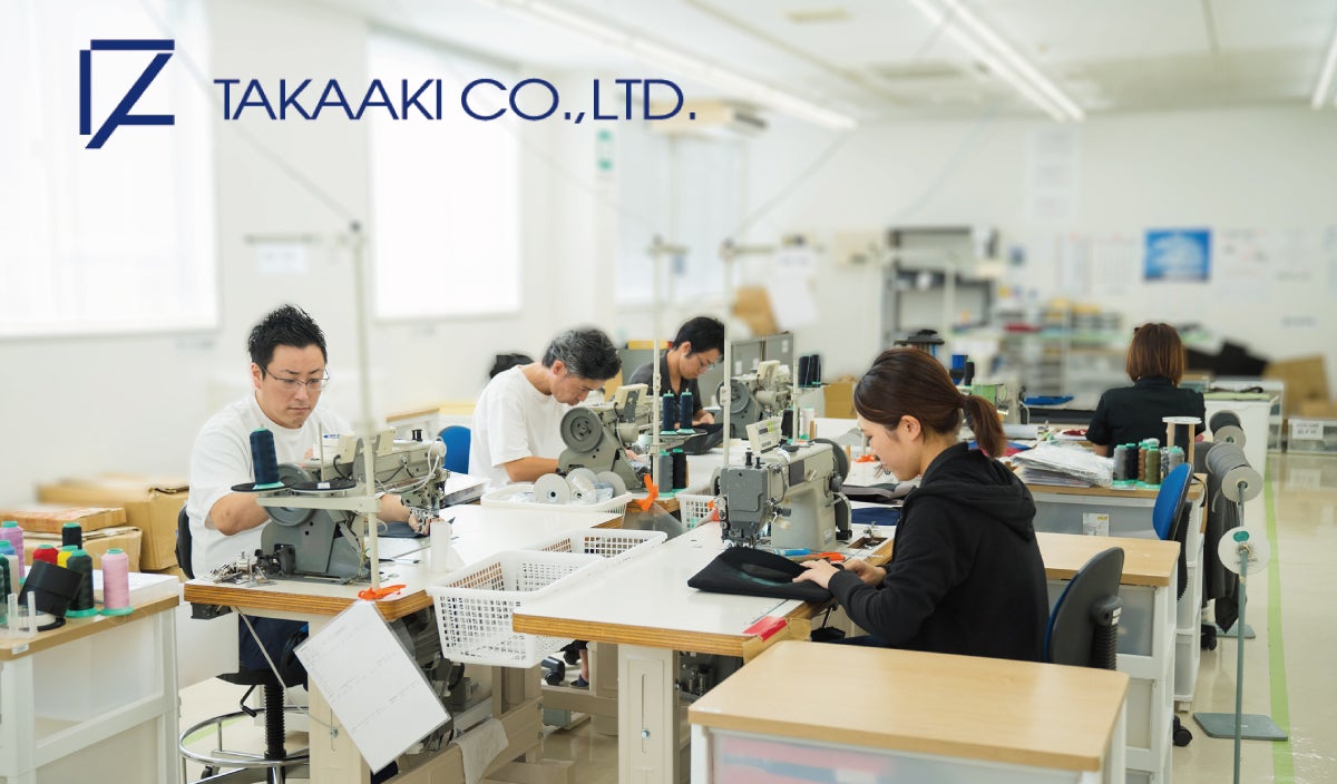 株式会社タカアキと申します。弊社は兵庫県豊岡市にて2010年5月より設立し、鳥取県鳥取市にも工場を置くOEMカバン製造をメインとする会社です。