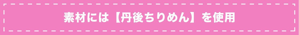 生地はどうするかと探していたところ、となりまちの京都府丹後地方でつくられている【丹後ちりめん】と運命的な出会いをして製造することができました。