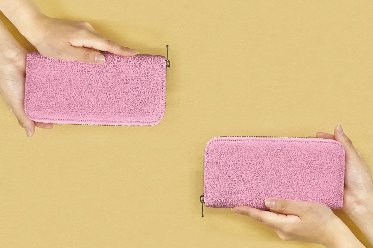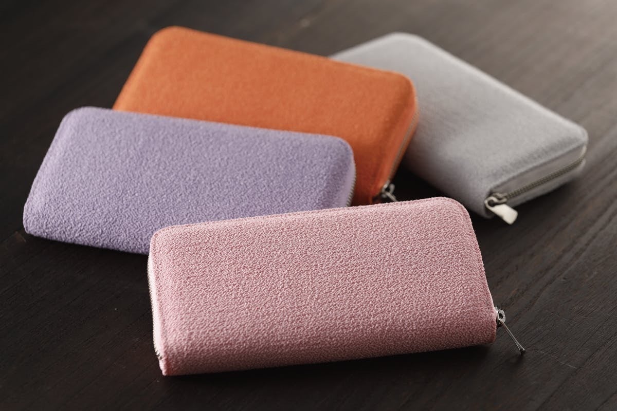 プロジェクトの財布は摩擦性、速乾性にも優れているポリエステルちりめんを選び、毎日気軽に伝統織物を楽しんでいただけるよう企画しました。