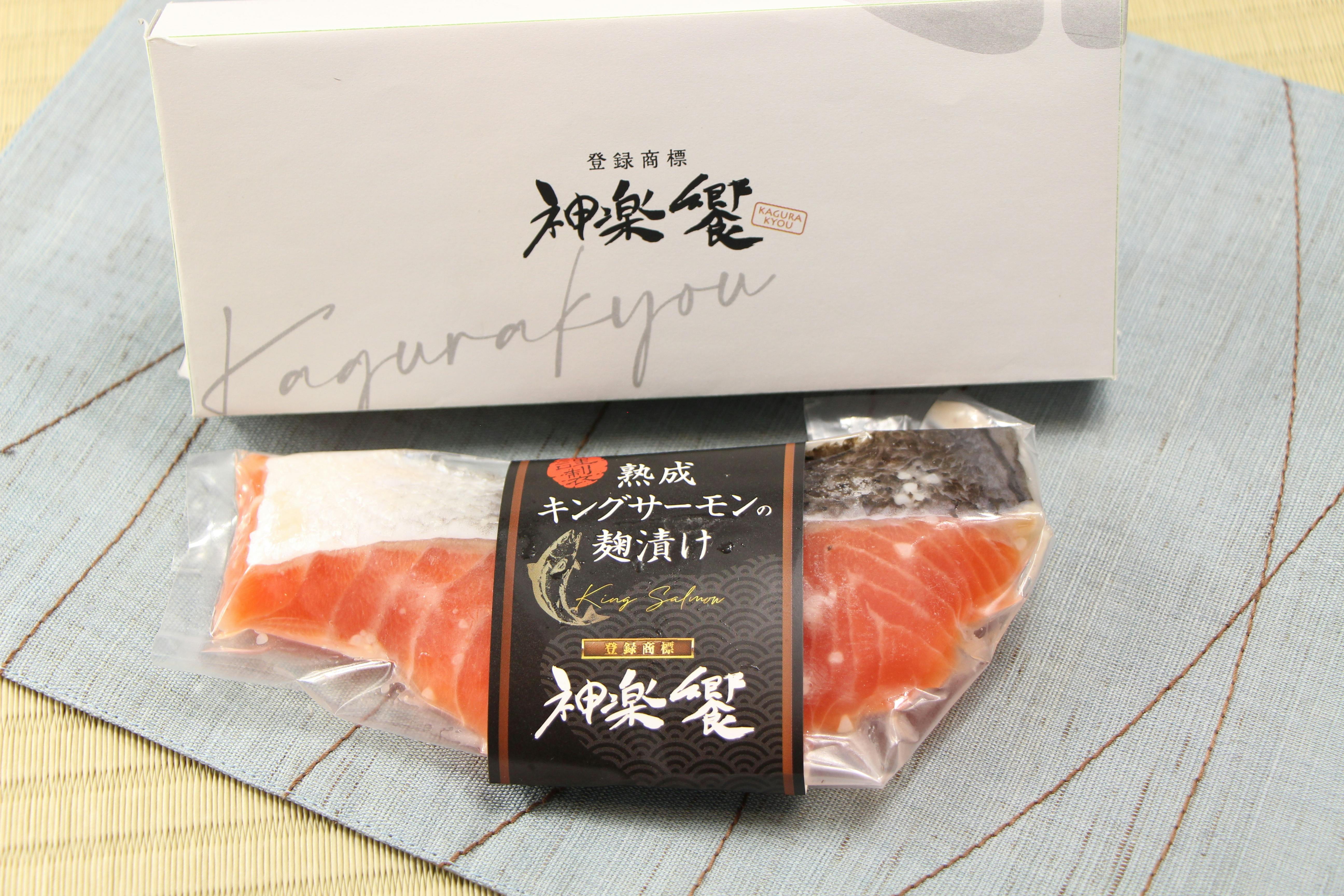 なので神楽饗の名物のキングサーモンは生でも食べれる魚を麹に漬けて熟して焼いているので