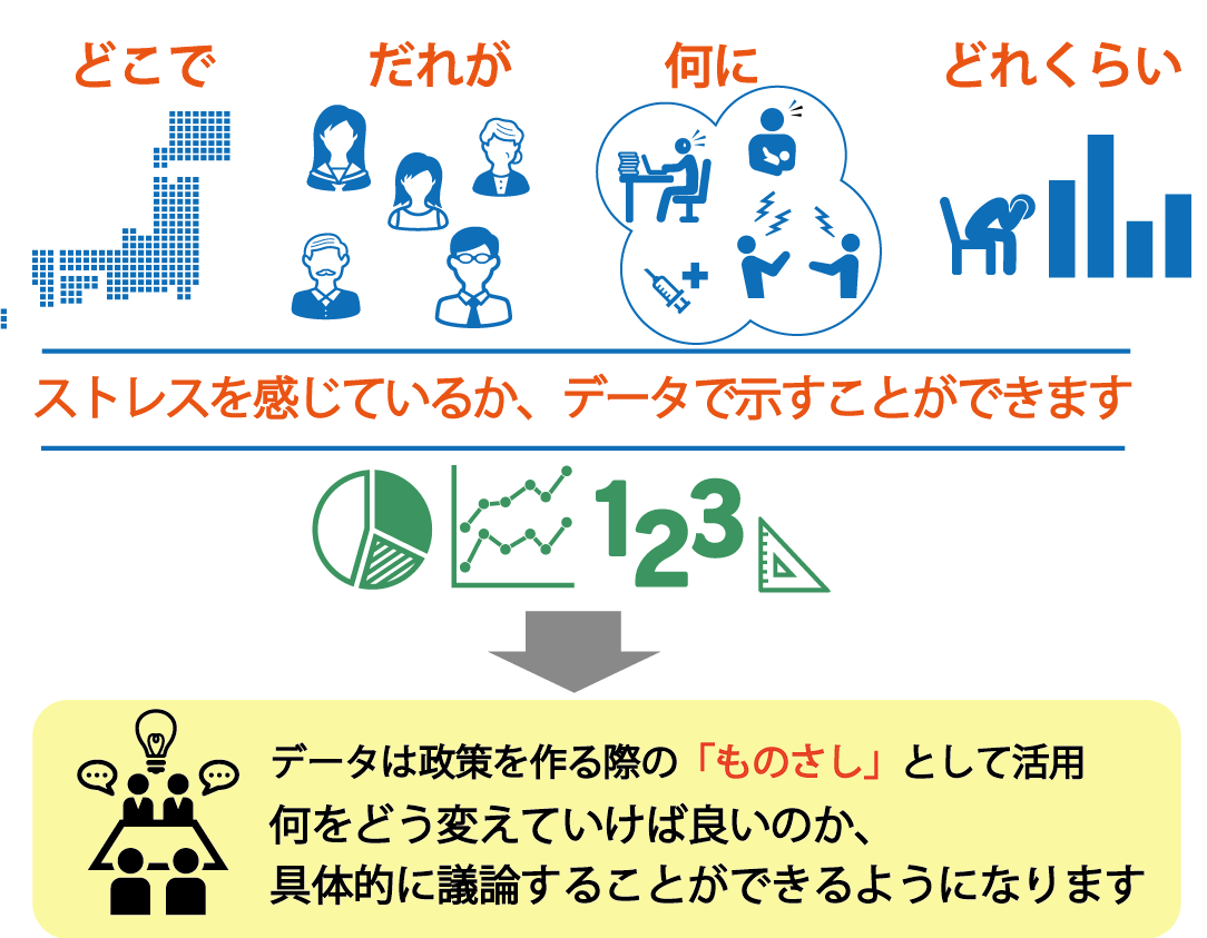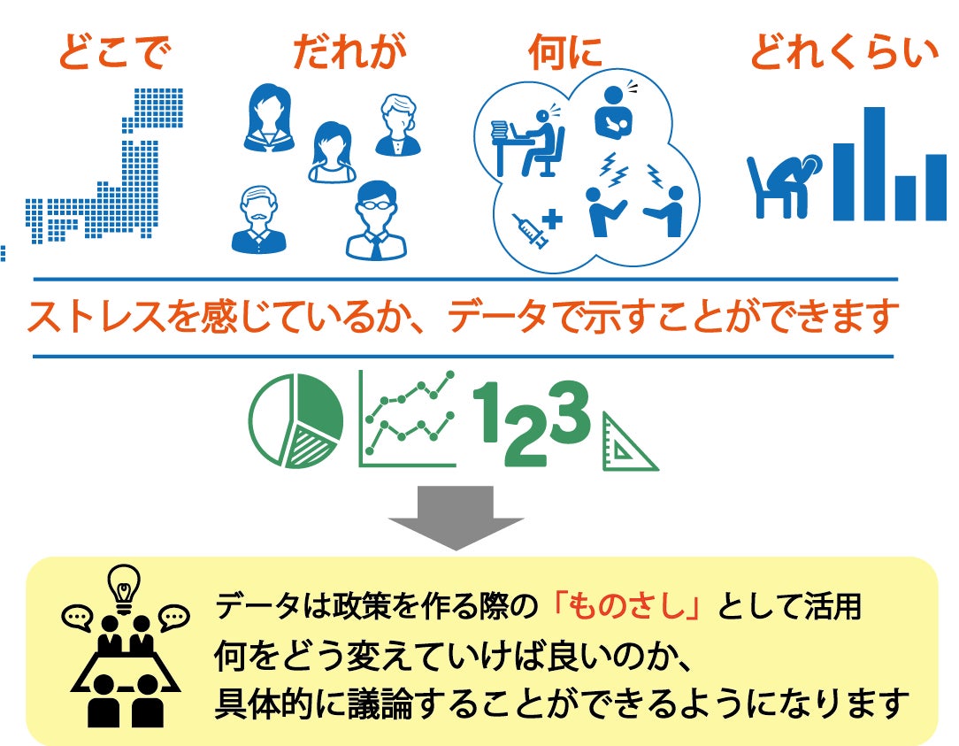 「自殺対策」「メンタルヘルス」 「労働環境の改善」といった、客観的なデータをもとに考えることが難しいとされている社会課題に対して、何をどう変えていけばよいのか、データをもとに具体的に議論することができるようになります。