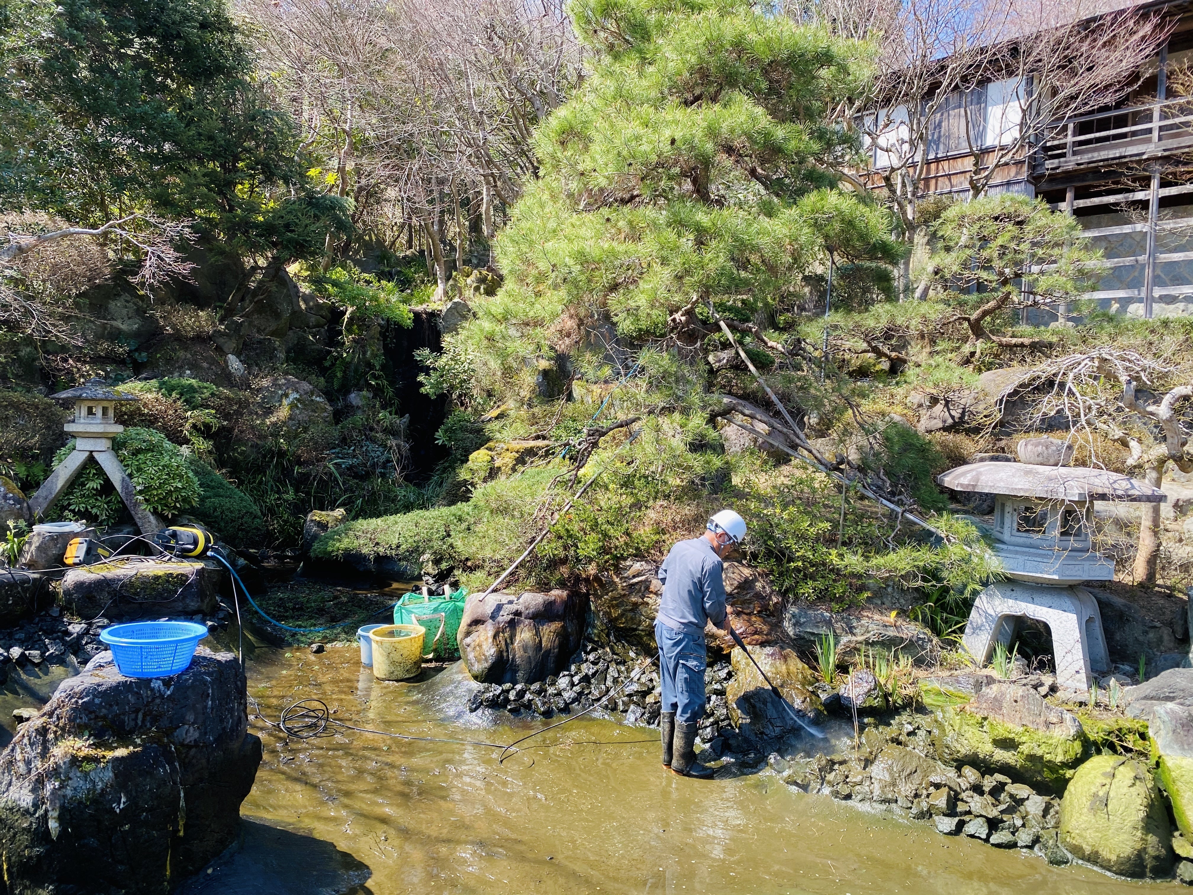 池の水を抜いて掃除しました