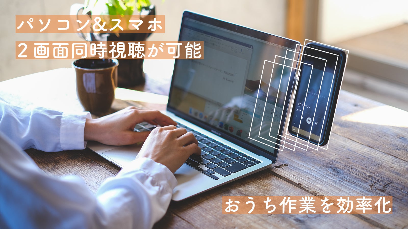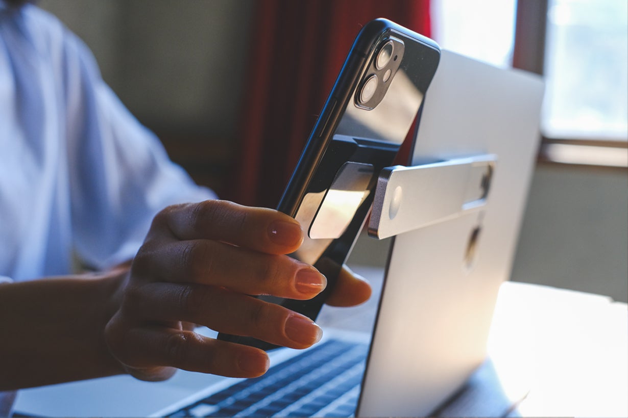 そんな時は、PITAPONにお持ちのスマホを「ピタっ」と装着。パソコンとスマホの両画面を同時に確認しながら作業ができるので、マルチタスクが断然効率的に。