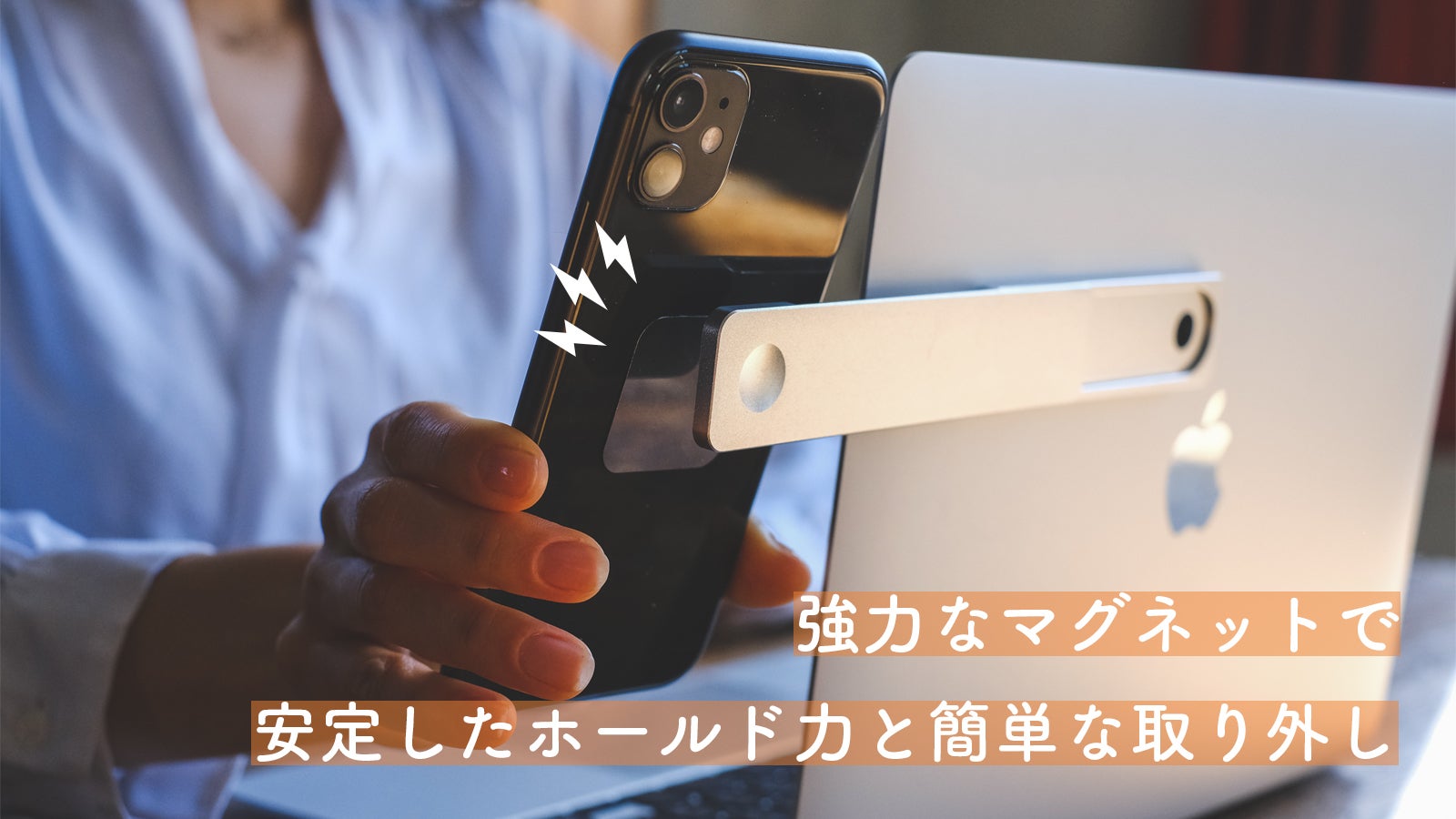 スマホを置かずに「浮かす」ので、デスク周りを広くすっきり使えます。作業効率をあげる上で、整理整頓された集中の途切れにくい環境づくりは欠かせません。