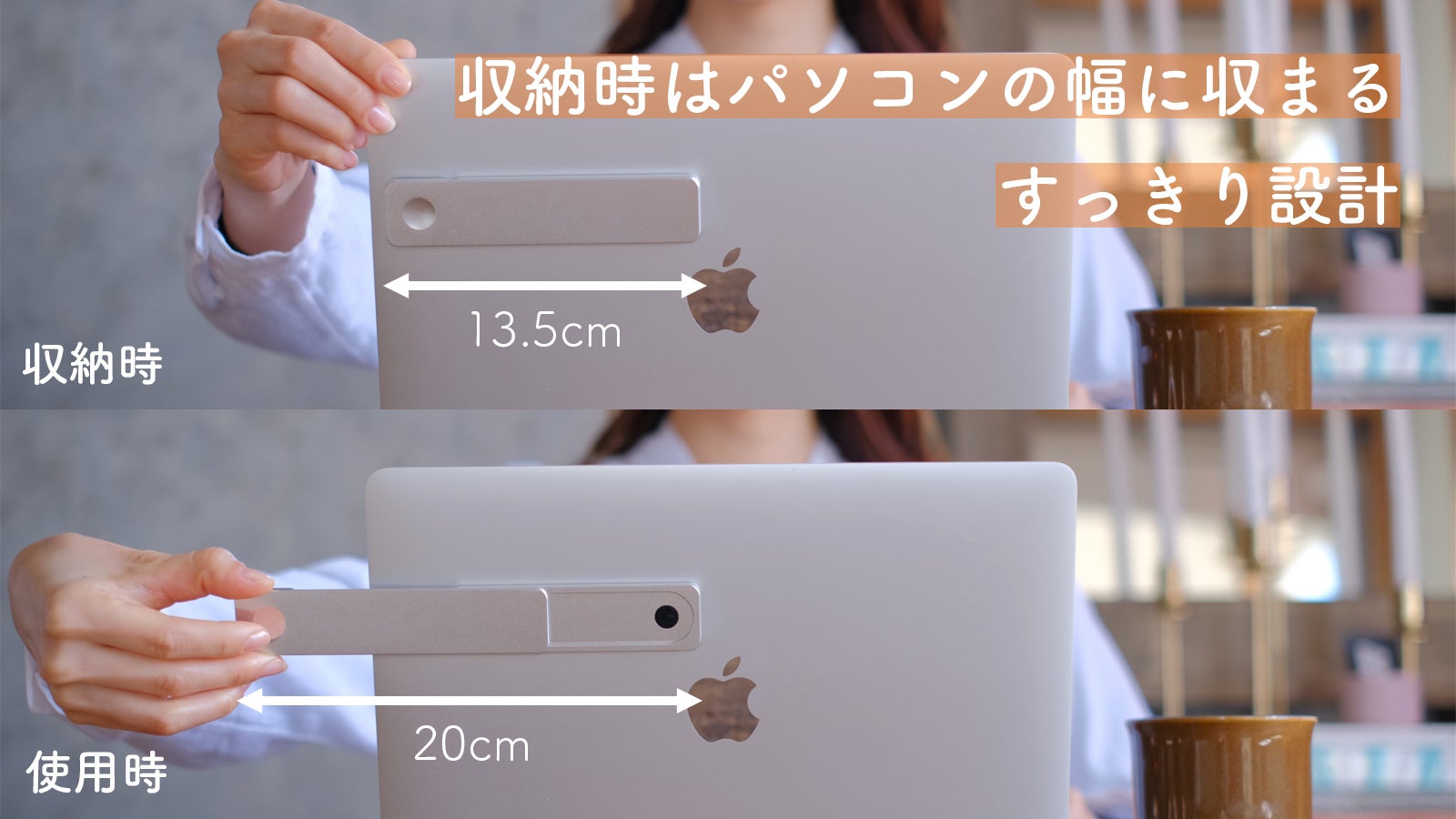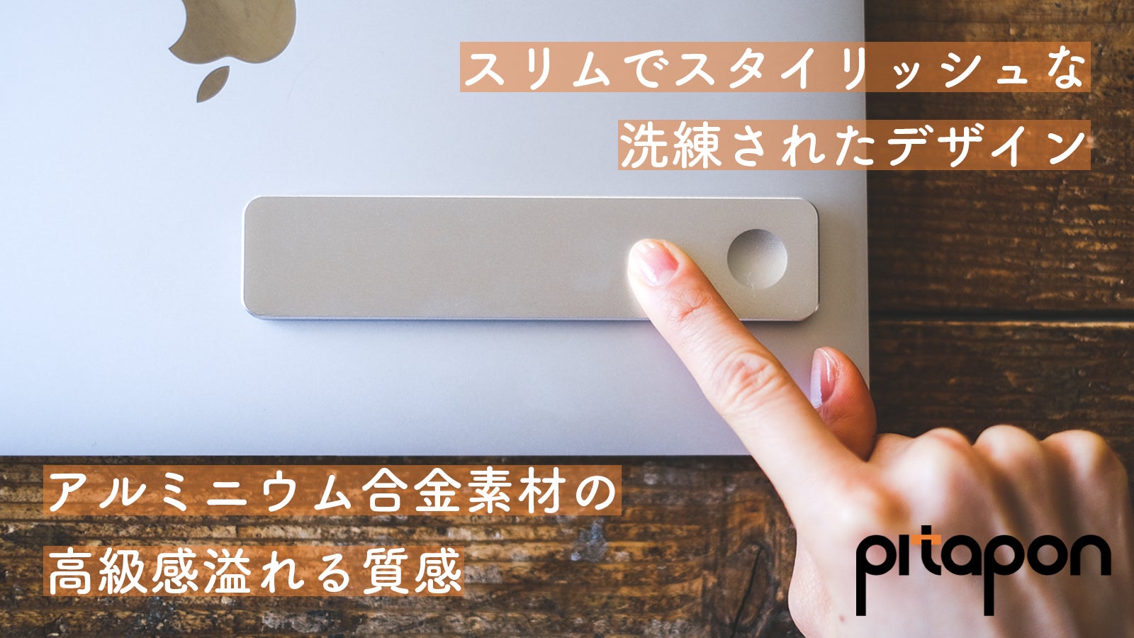 かつPITAPONは、スリムで軽い。使用時以外は収納できるので持ち運びも簡単です。パソコンの質感や色と相性のいいアルミニウム合金素材を採用しているので、自然とあなたの生活に溶け込みます。