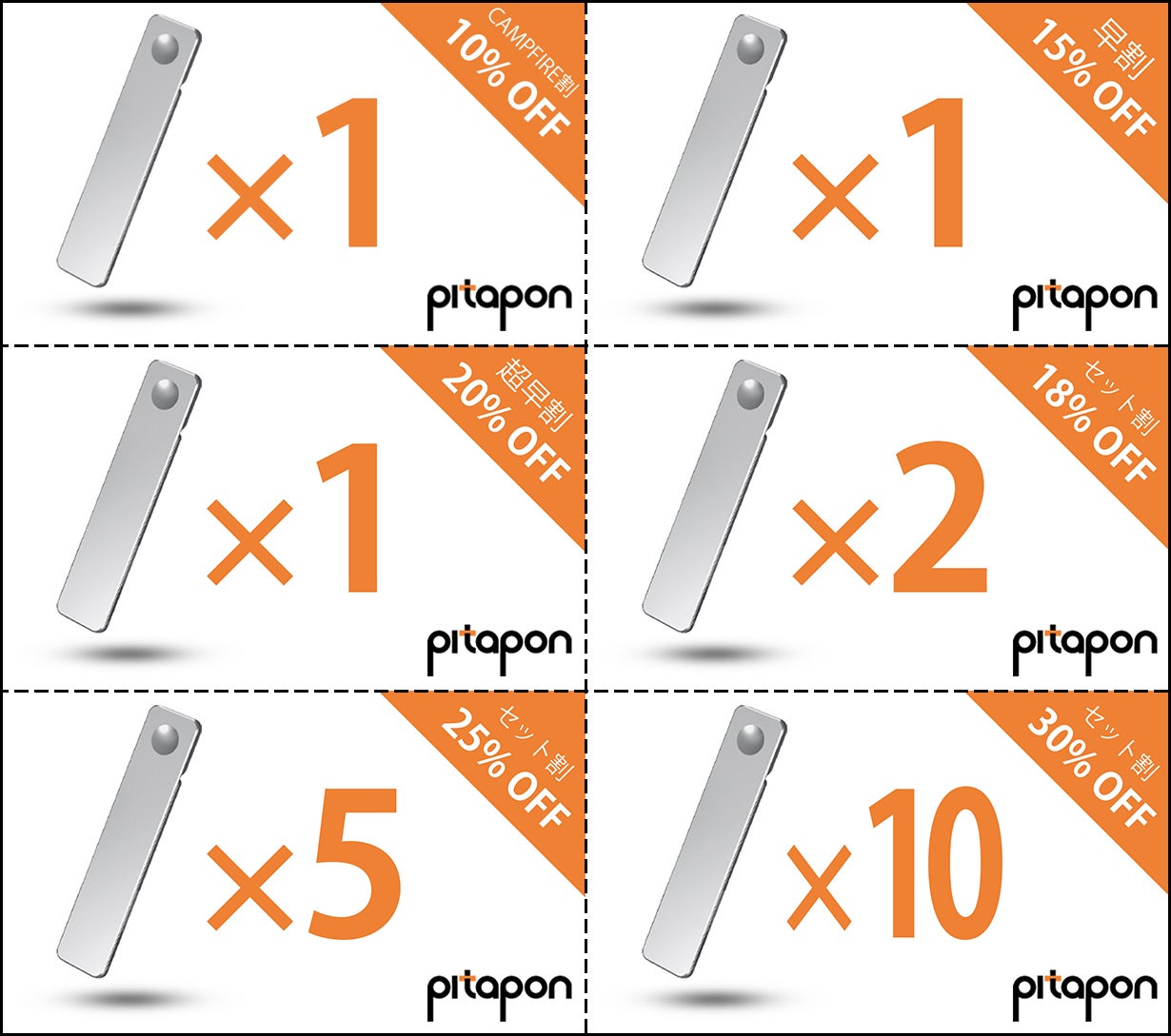 2021/05/05 10:17プロジェクト終了のお知らせ・製品発送のお知らせプロジェクトが終了致しました。この度は、32名の方から【PITAPON】のご支援をいただきました。ご支援していただいた皆様、誠にありがとうございます。リターン品の発送につきましては、早ければ5月中、遅くとも6月中には、発送を行う予定です。製品到着まで、もうしばらくお待たせしてしまいますが、製品の到着を楽しみにしていていただけると幸いです。また、KNEW-ITでは、お客様の生活をより快適にするため、製品やアイデアを通じて新たな発見を提供し続けられるよう、今後も活動を行なっていくので、よろしければ下記リンクからInstagramのフォローもよろしくお願い致します。https://www.instagram.com/knew_it_japan/?hl=jaこの度は、ご支援ありがとうございました。引き続きKNEW-ITの活動の応援をよろしくお願い致します。KNEW-IT もっと見る