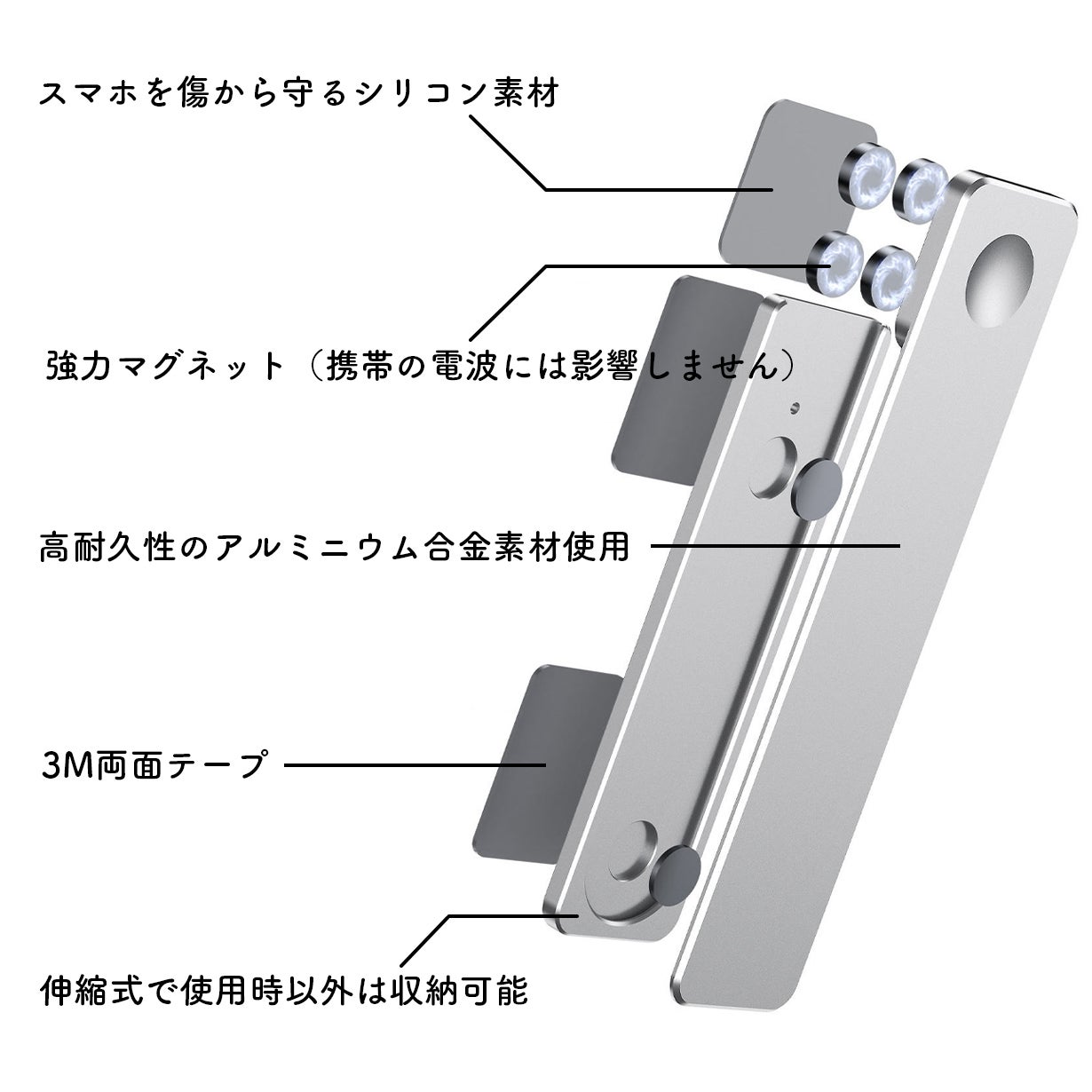 素材:アルミニウム合金、シリコン、磁石