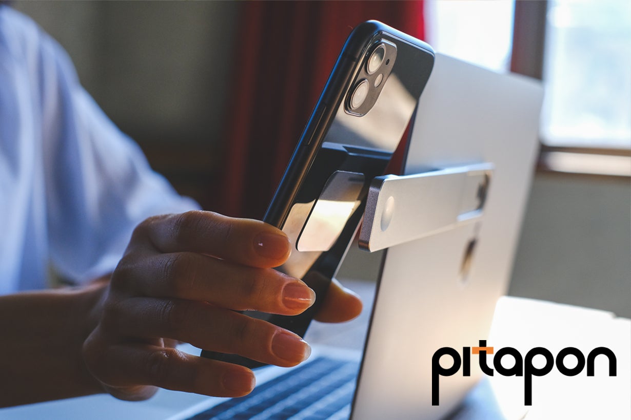 PITAPONはパソコンとスマートフォン両方の画面を同時に視聴・操作することを可能にした、パソコン取り付け型スマホスタンドです。