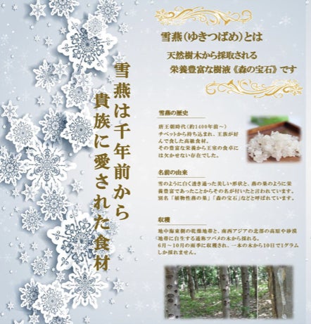 「雪燕」が植物性ツバメの巣と言われる所以を、この美しい形状と豊富な美容栄養成分に着目し、幅広く皆さまのお手元に届けられるよう努力してまいります。