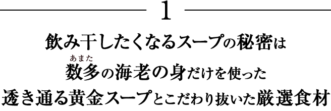 また、海老の風味をどんな材料を使用して、どのようにして満足の いくスープに仕上げるのか悩み抜きました。