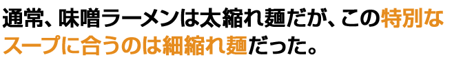 ●味噌ラーメンは太縮れ麺が常識(もっちり感と程よいスープの絡みが特徴)