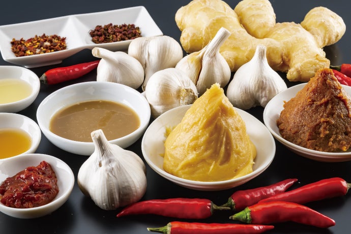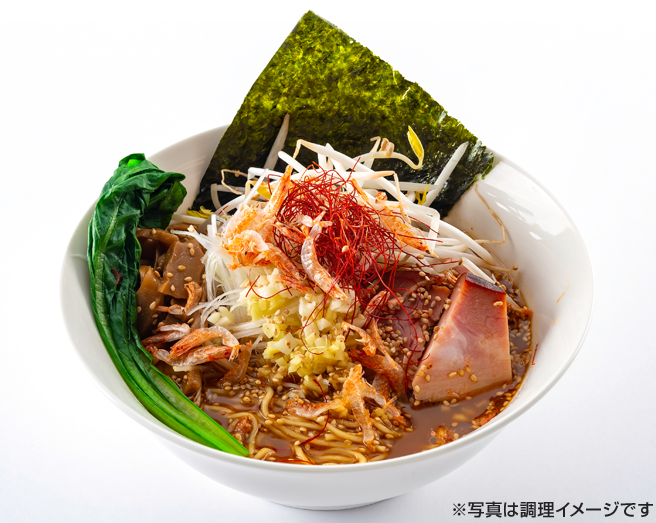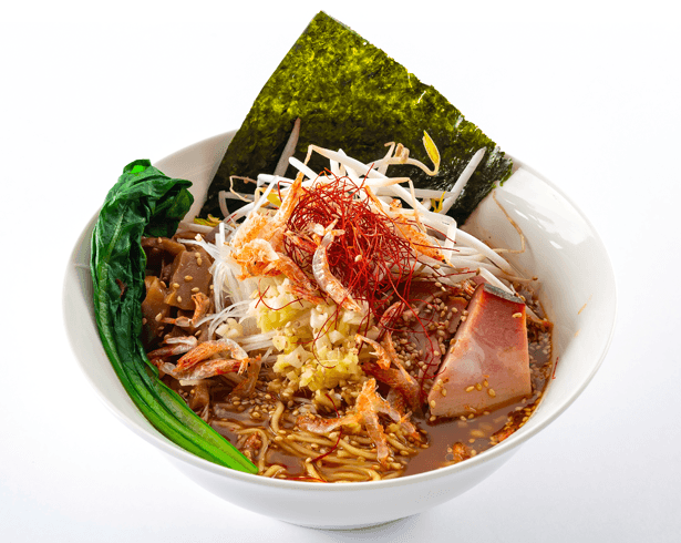 海老出汁の黄金スープをベースに北海道産赤味噌、白味噌、北海道醸造醤油をブレンドし、 練りゴマ、ネギオイル、花山椒と山椒のシビ辛、唐辛子、豆板醤、ニンニク、生姜など数多の食材で仕上げたこだわりのラーメンスープが誕生しました。