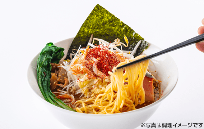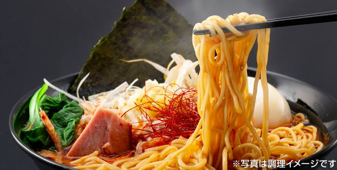 カップ麺と同程度のゆで時間(2分)で本格海老味噌ラーメンを実現!