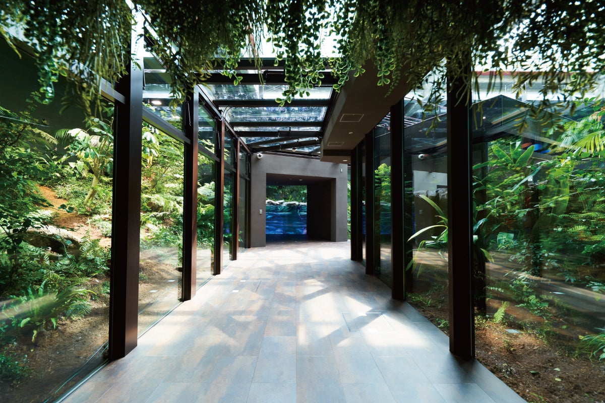 カワスイの目玉であるアマゾンゾーンには、現地に生息している植物を配してリアルな熱帯雨林を再現しています。また、植物育成の目的に加えて実際のジャングルの雰囲気をより再現すべく、霧やスコールや雷雨の演出も行っています。