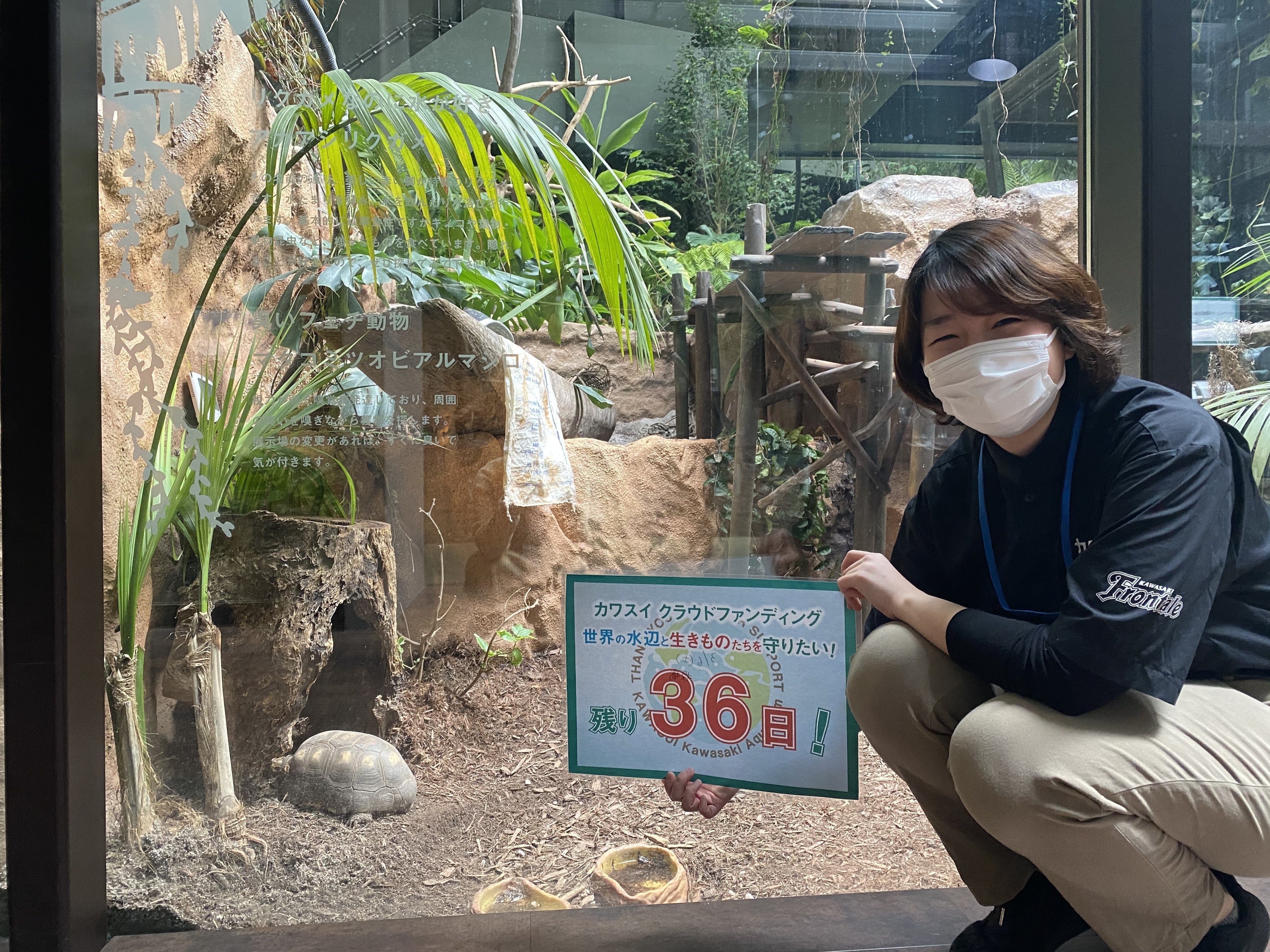 カワスイにいるアカアシガメについてガイドを聞いていただき、命名していただきます。