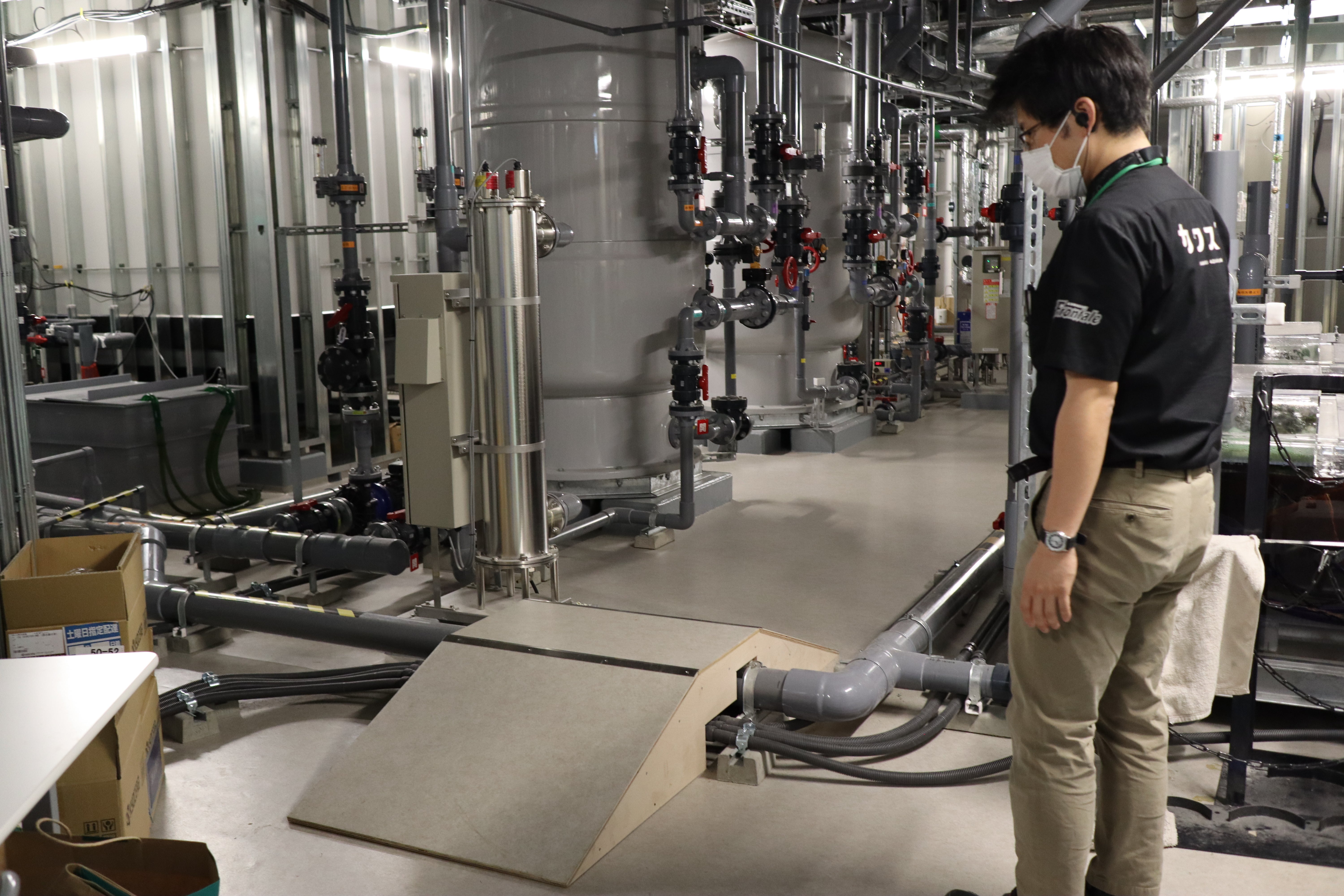 カワスイは元々別の店舗が入っていて、水族館のためにつくられた場所ではありませんでした。ですのでカワスイの配管や設備も、新しくつくられた部分と既存の部分が混在していて複雑な構造になっています。配管経路や設備の使用方法を理解するのに苦労しました。