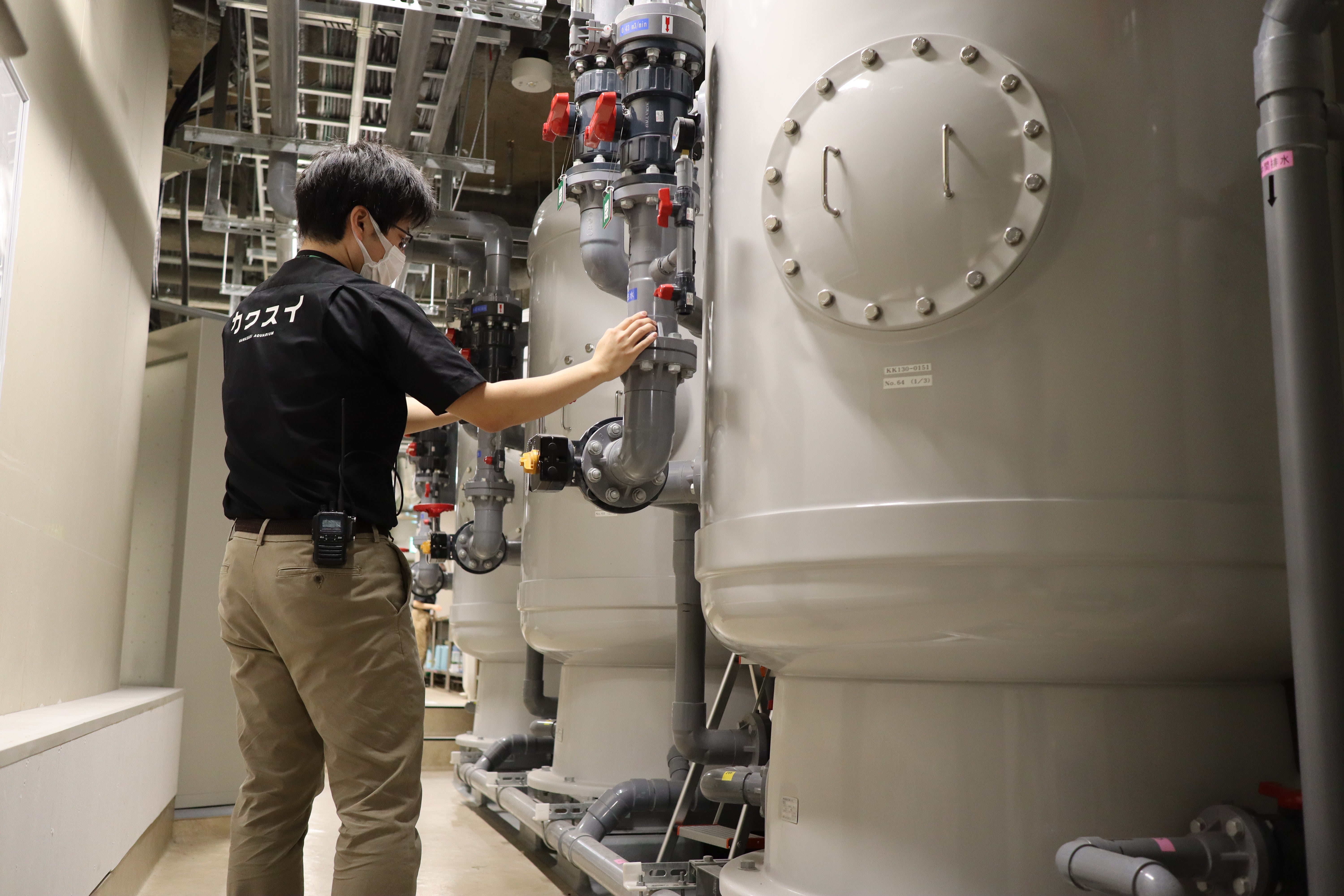 美田:これまでご案内したことのない「施設管理目線」でのバックヤードツアーで、カワスイを司るといっても過言ではないくらい重要なシステムの数々をご紹介します。