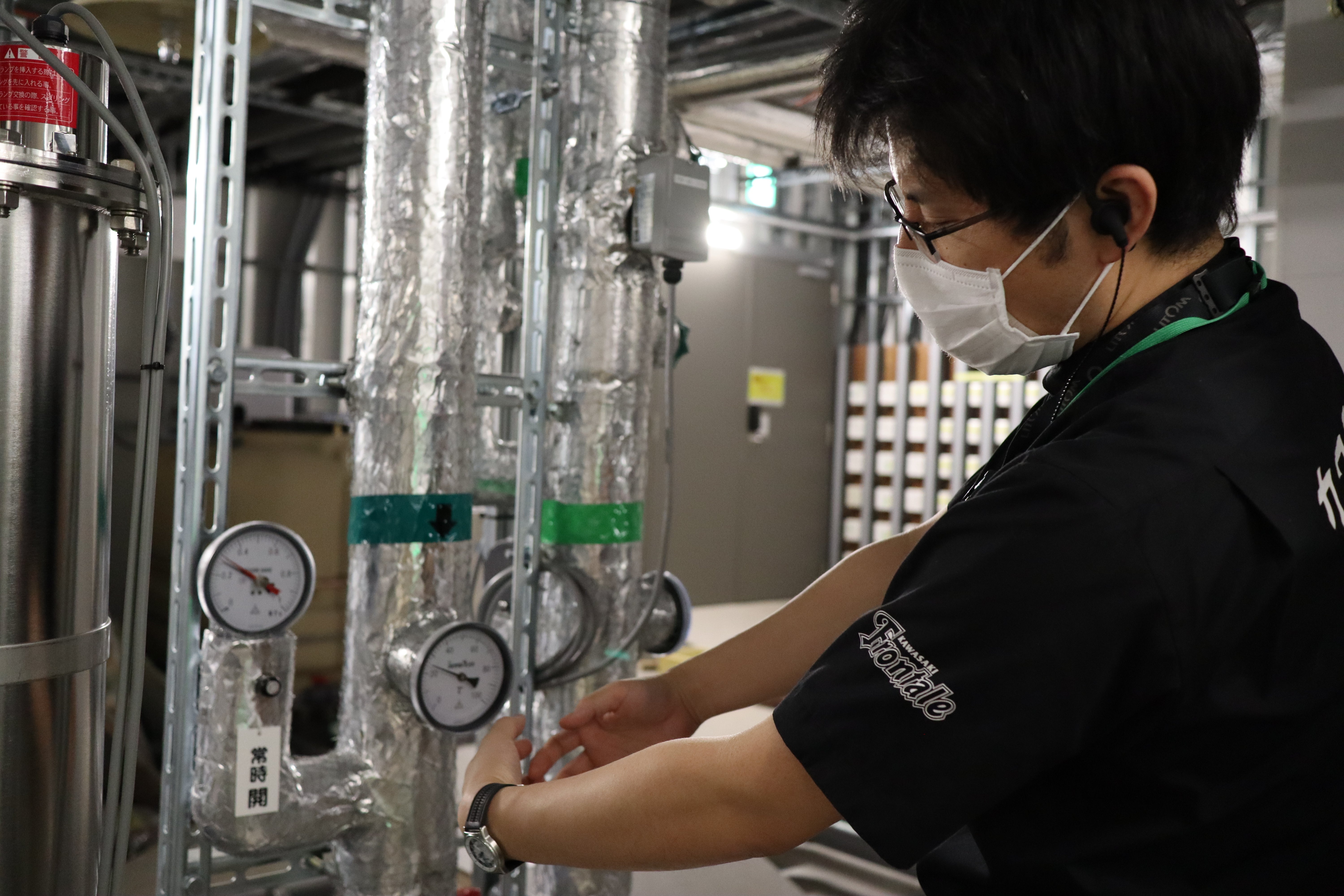 美田:カワスイの施設管理担当クルーとして働いています。カワスイがオープンする前から、館内の設備に関することや機械の調節などを行っています。