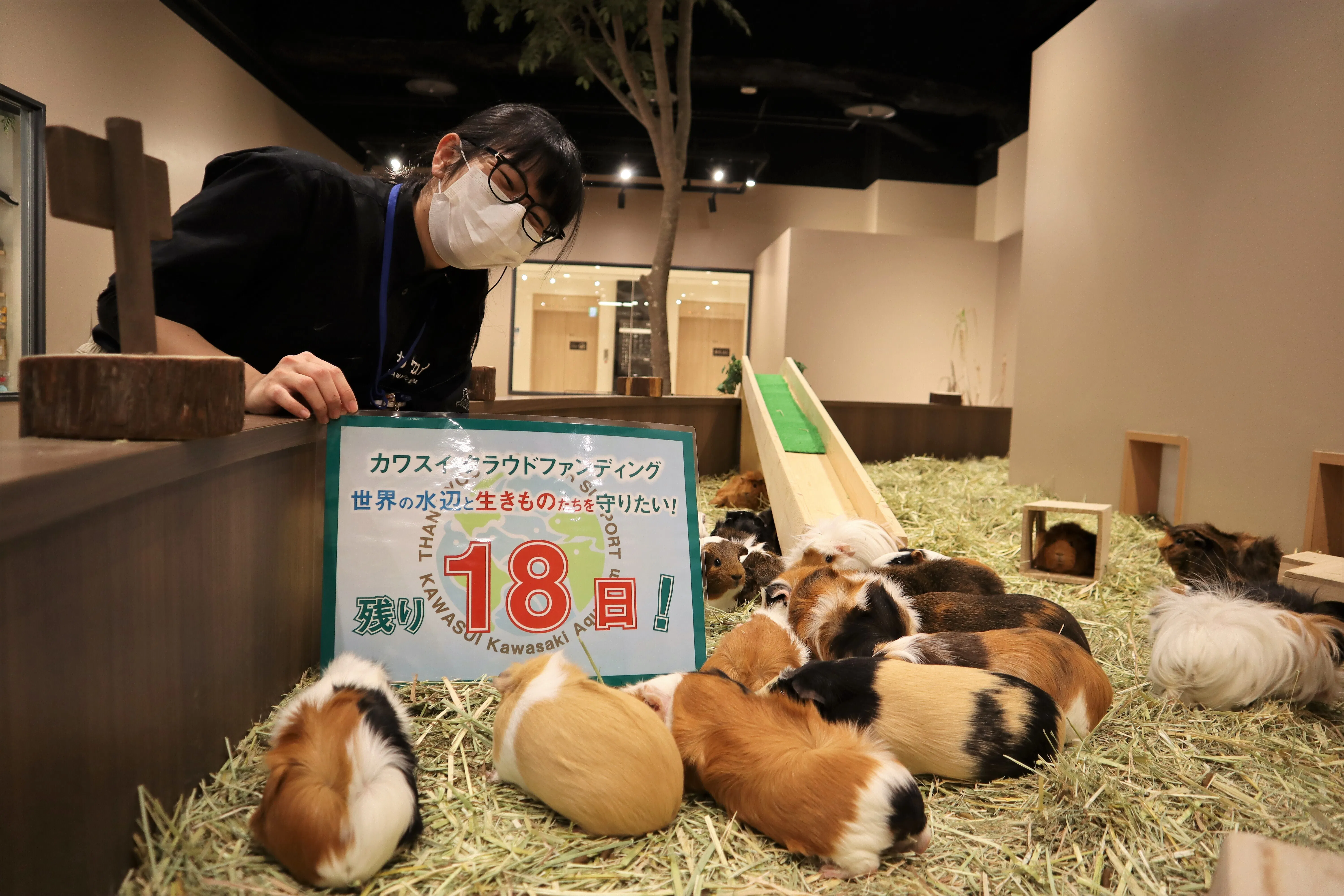 カワスイは水族館ではありますが、ネコとのふれあいが楽しめる「ソラネコカフェ」だけでなく、実はモルモットとのふれあいが楽しめる場所もあるんです。