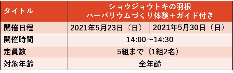 本日は「ショウジョウトキの羽根ハーバリウムづくり体験+ガイド付き」のご紹介です!