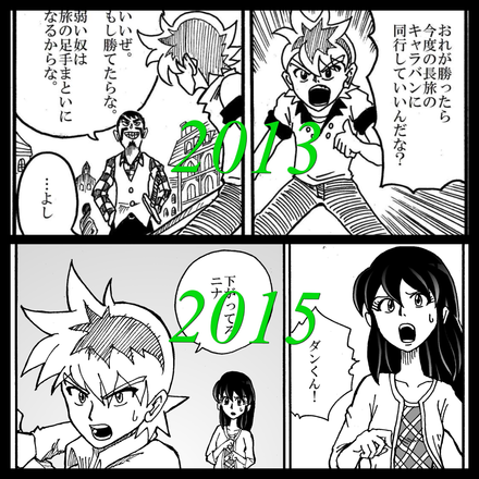 ちなみに、この投稿のタイトルイラストは、ロールプレイングコミック製作開始当時と、最新の絵の比較です。