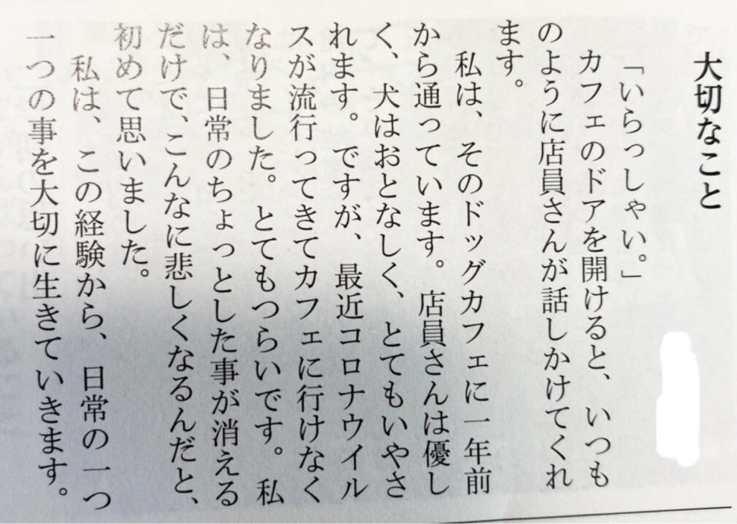 先日、学校でこんな文章を書いてくれたようです。