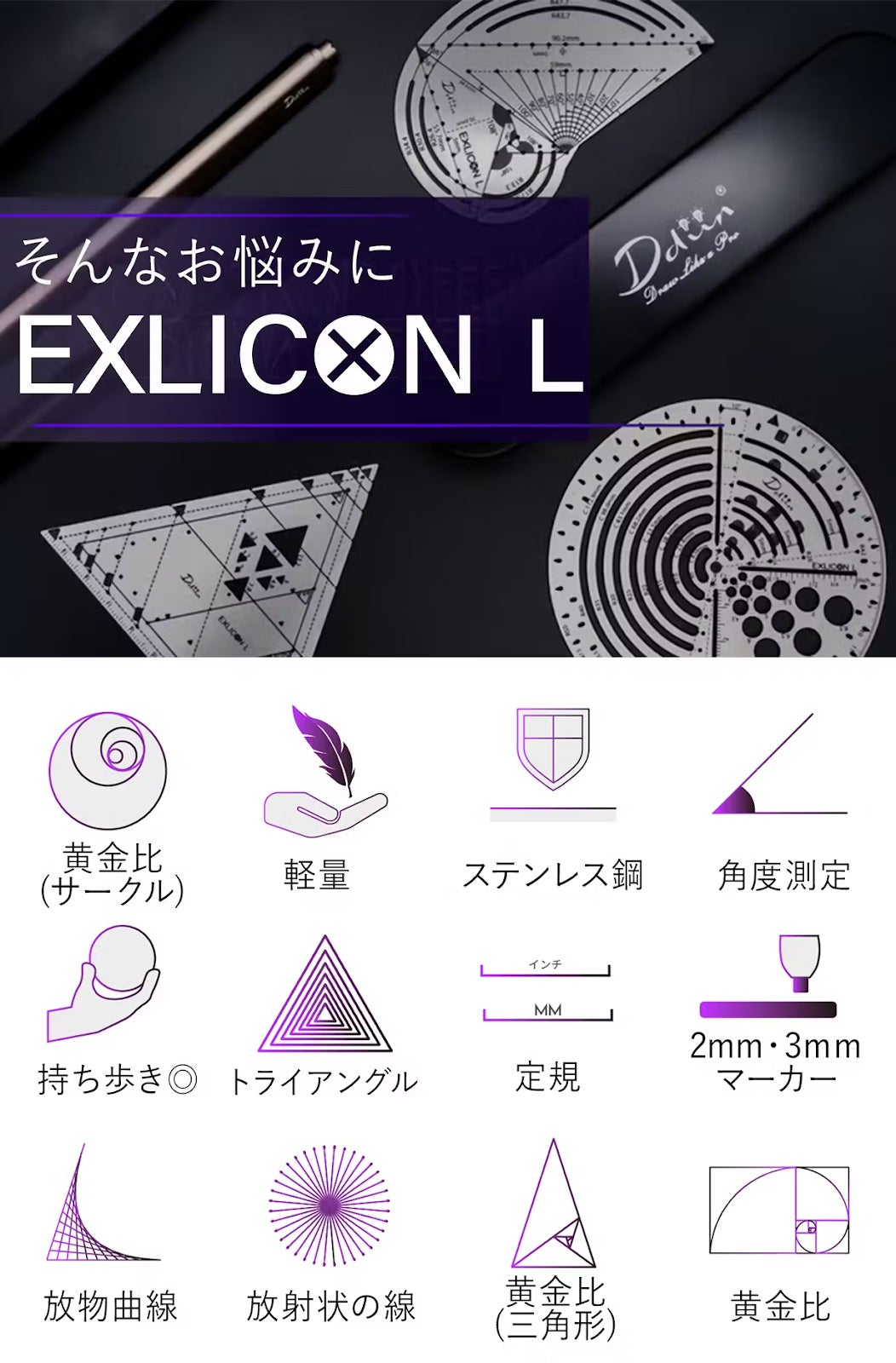 黄金比を簡単かつ正確に描く!プロフェッショナル仕様の多機能スケール