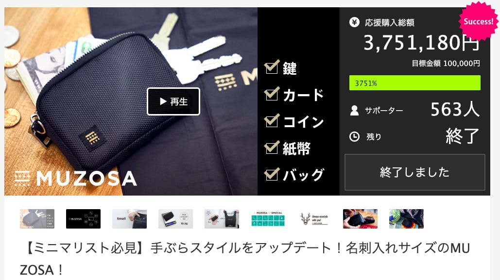 レジ袋有料化になる8ヶ月前でしたが563名の多くのサポーターの方々から応援購入していただきました。ミニマリストやコンパクト財布を探していた皆様からもたくさんの応援購入を頂きました。