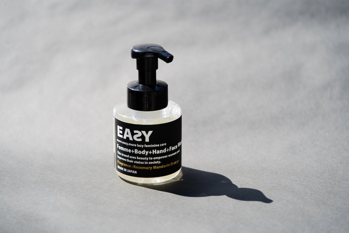 - フェミニンケアソープ、ボディソープ、洗顔料、ハンドソープ4つがこれ1本で完了。