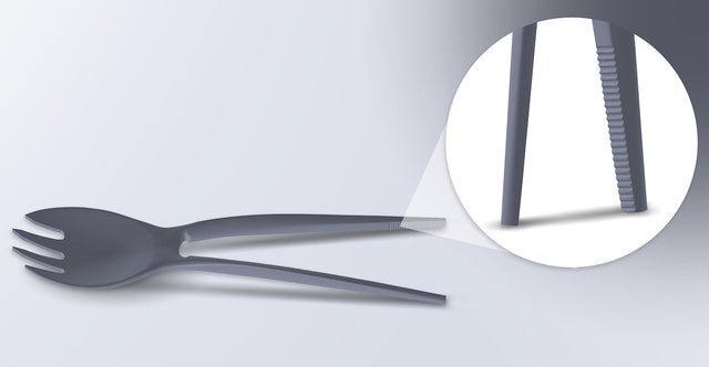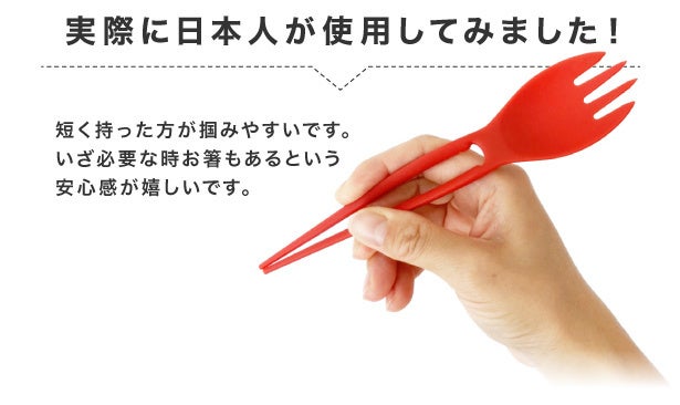スプーンの向きを変え2WAYで使用できます。左側の使用では、2本のカトラリーがぴったりフィットするので、薄いものを掴みやすくなっております。