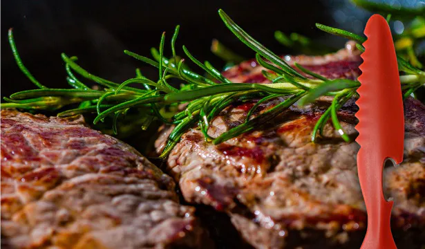プラスチック製とは思えない切れ味のステーキナイフ。
