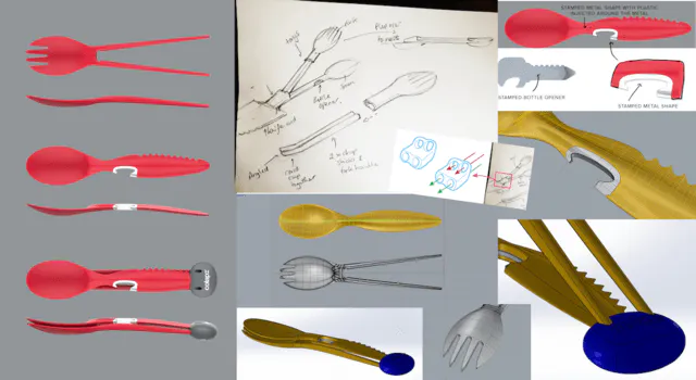 7-in-1 を金属で作ることも一時は検討しましたが、金属ではどうしても理想とする「箸のしなり」を実現すること難しく、その後の素材選びにも試行錯誤を繰り返してきました。