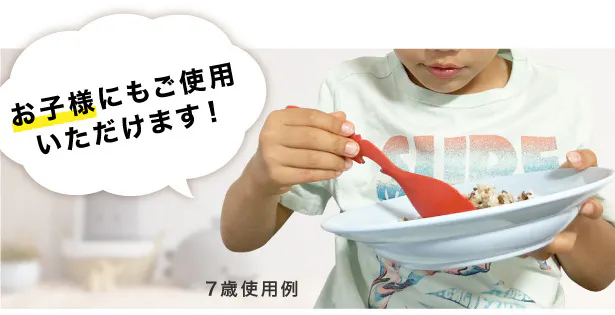 A:本製品は大人の方向けですが、7歳の子供への使用検証では、問題なく食事ができておりました。ご参考にしていただけますと幸いです。