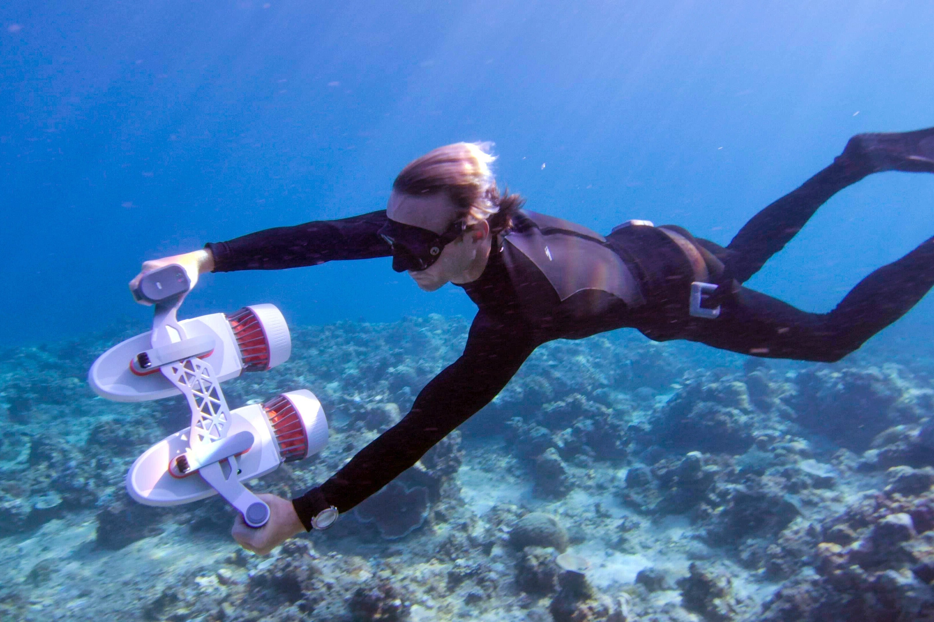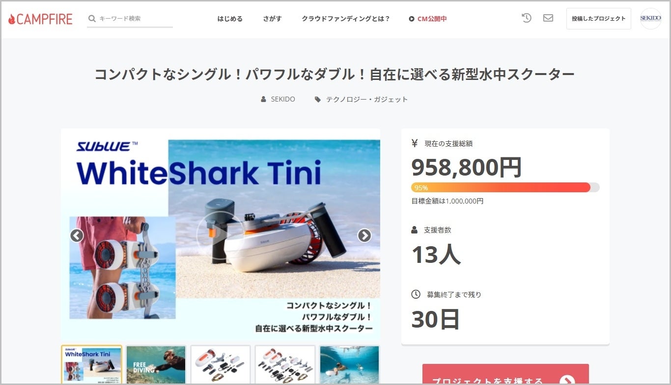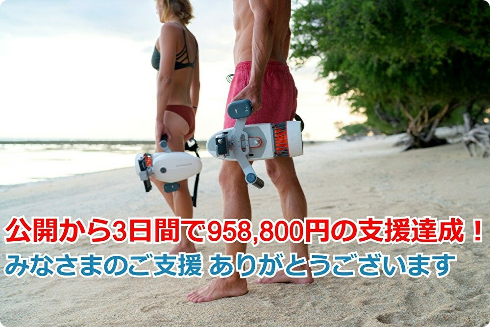プロジェクト公開から3日、水中を楽しむ皆さんに向けて開発されたニーズに合わせて、自在に組み合わせられる最新水中スクーター「WhiteShark Tini」に、95万円を超えるご支援を頂きありがとうございます。