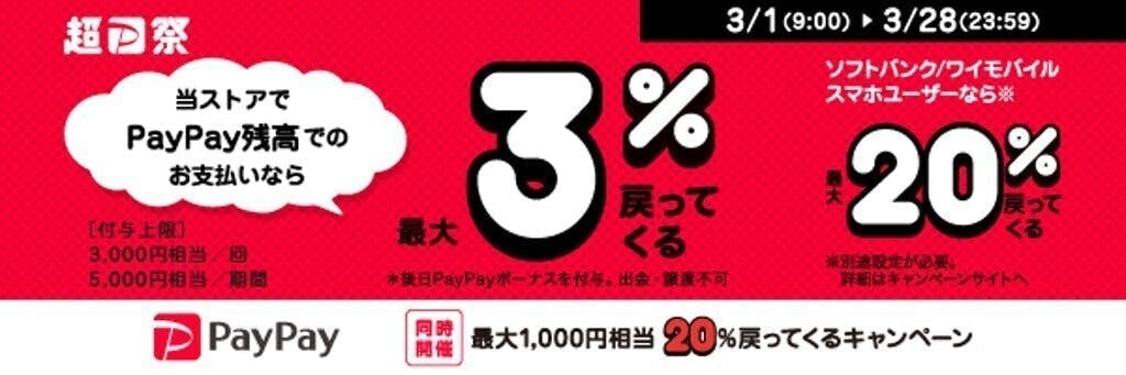 PayPayでのお支払いでさらにお得な「超PayPay祭」は3/28(日)まで!