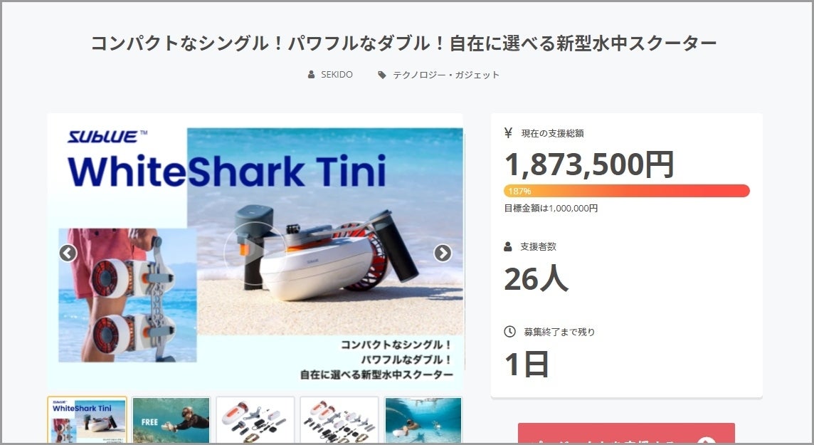 すでにご支援頂き、到着をお待ちの方や、WhiteShark Tini の魅力に共感頂いた方は、ぜひその魅力をSNSなどでご紹介頂ければ幸いです。