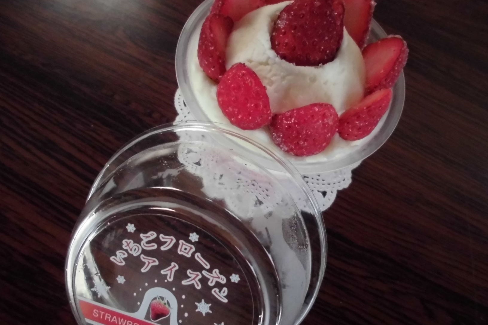 そこでいちごのフローズンをより多くの人に味わってもらいたいと、新商品の開発に乗り出しました。地元のアイスクリーム製造業者と協同で製品化にこぎ着いたのが「手造りいちごフローズンアイス」です。
