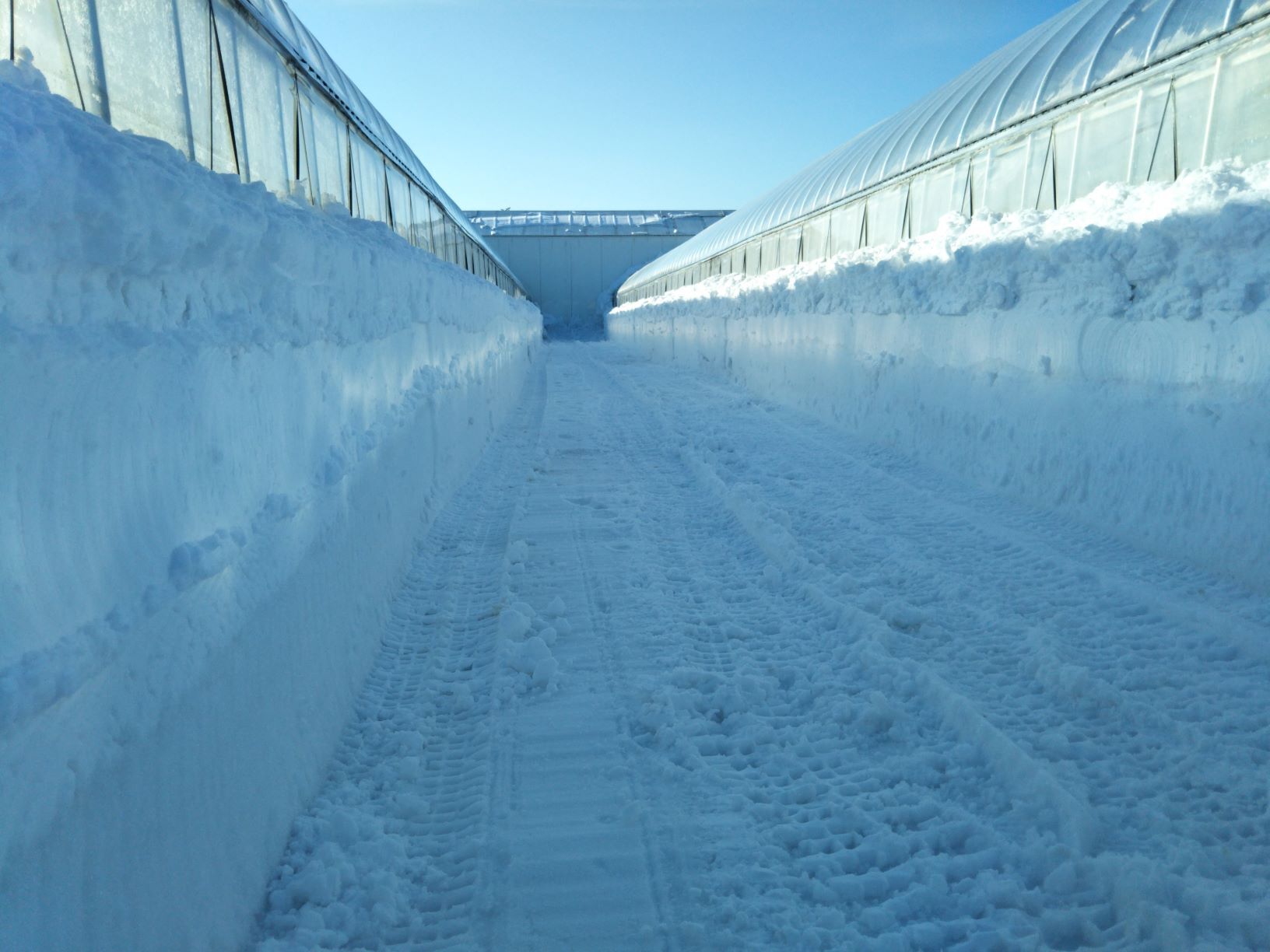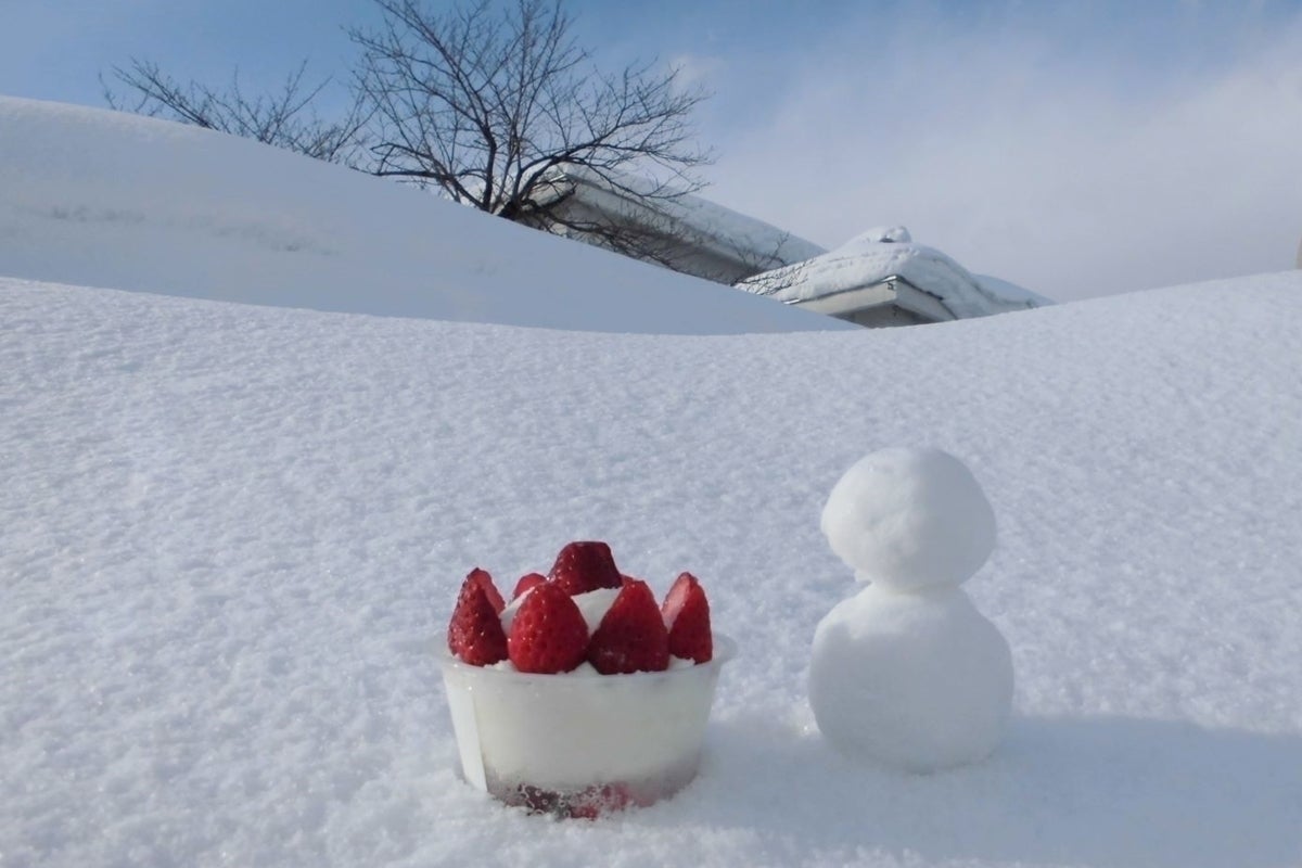 ハウスのまわりには雪がたくさん積もっています。かまくらの中を想像してもらえると、雪室いちごをイメージしやすいかもしれません。