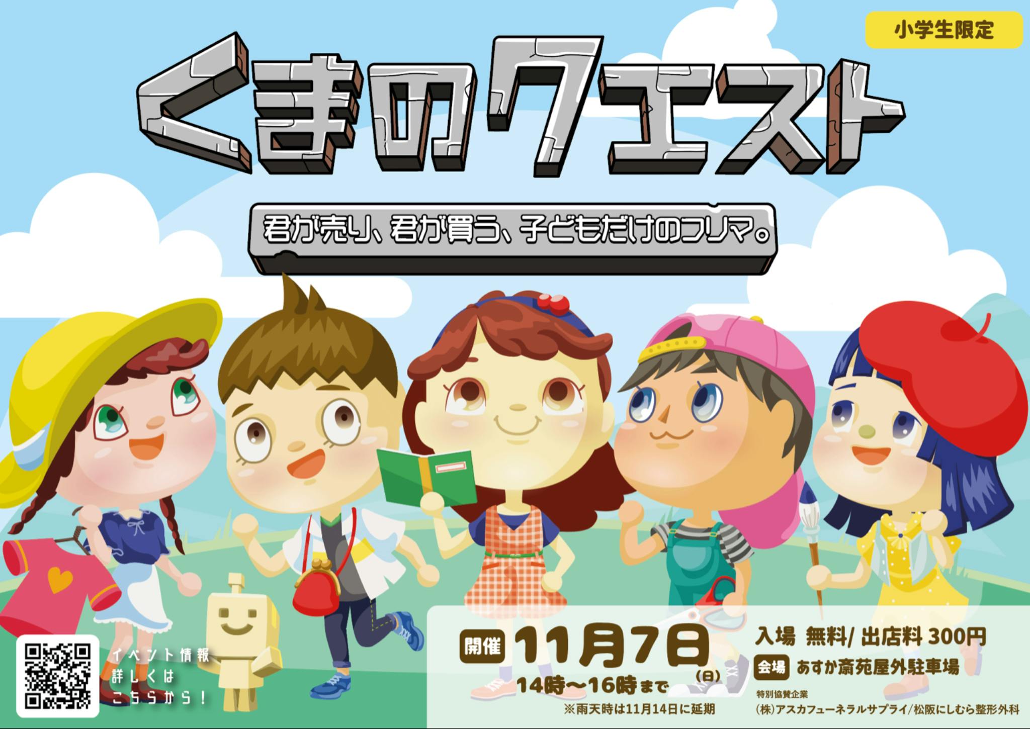 水面化で進めていた、こどもフリマイベント「くまのクエスト」、ついに始動です!まず2つ報告、その後に詳細を記載します。