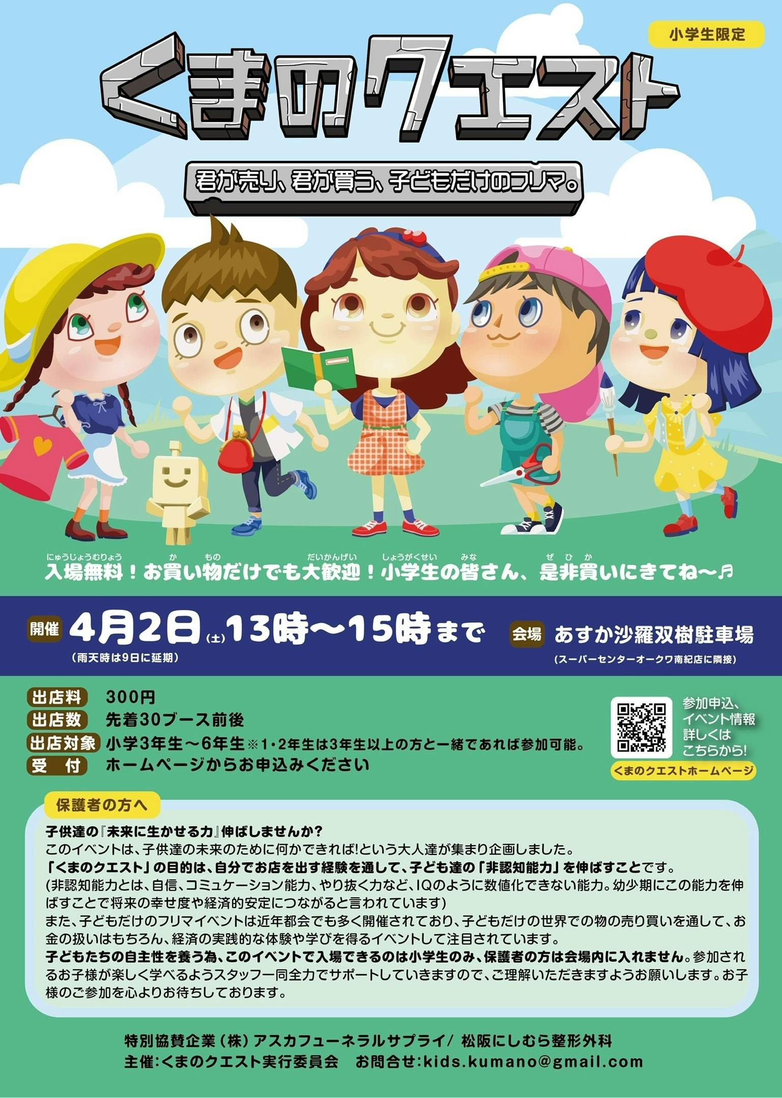 子どもフリマイベント「第2回くまのクエスト」は4月2日に開催します!